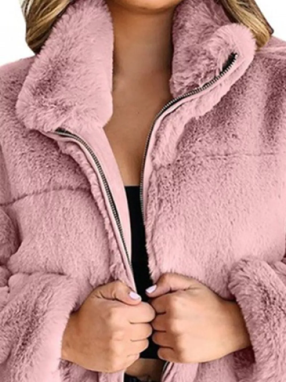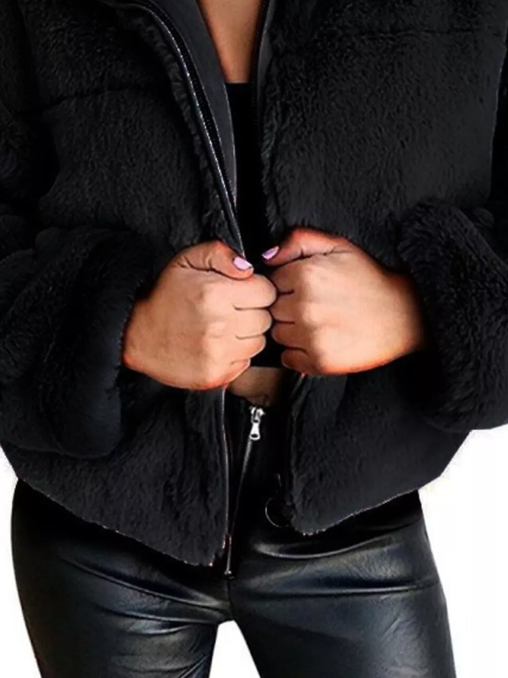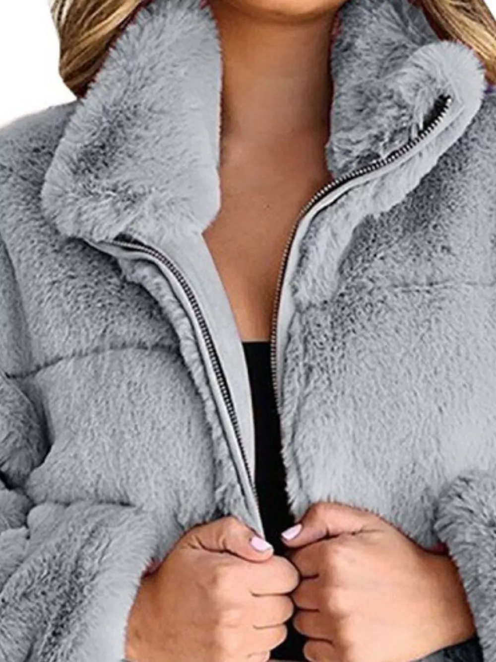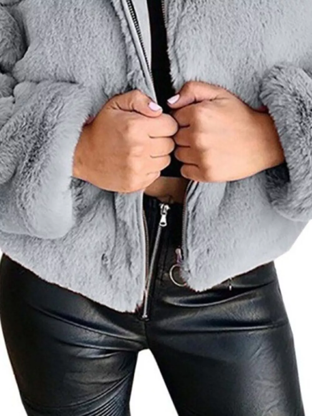 Full Size Faux Fur Cropped Zip-Up Jacket Plus Size