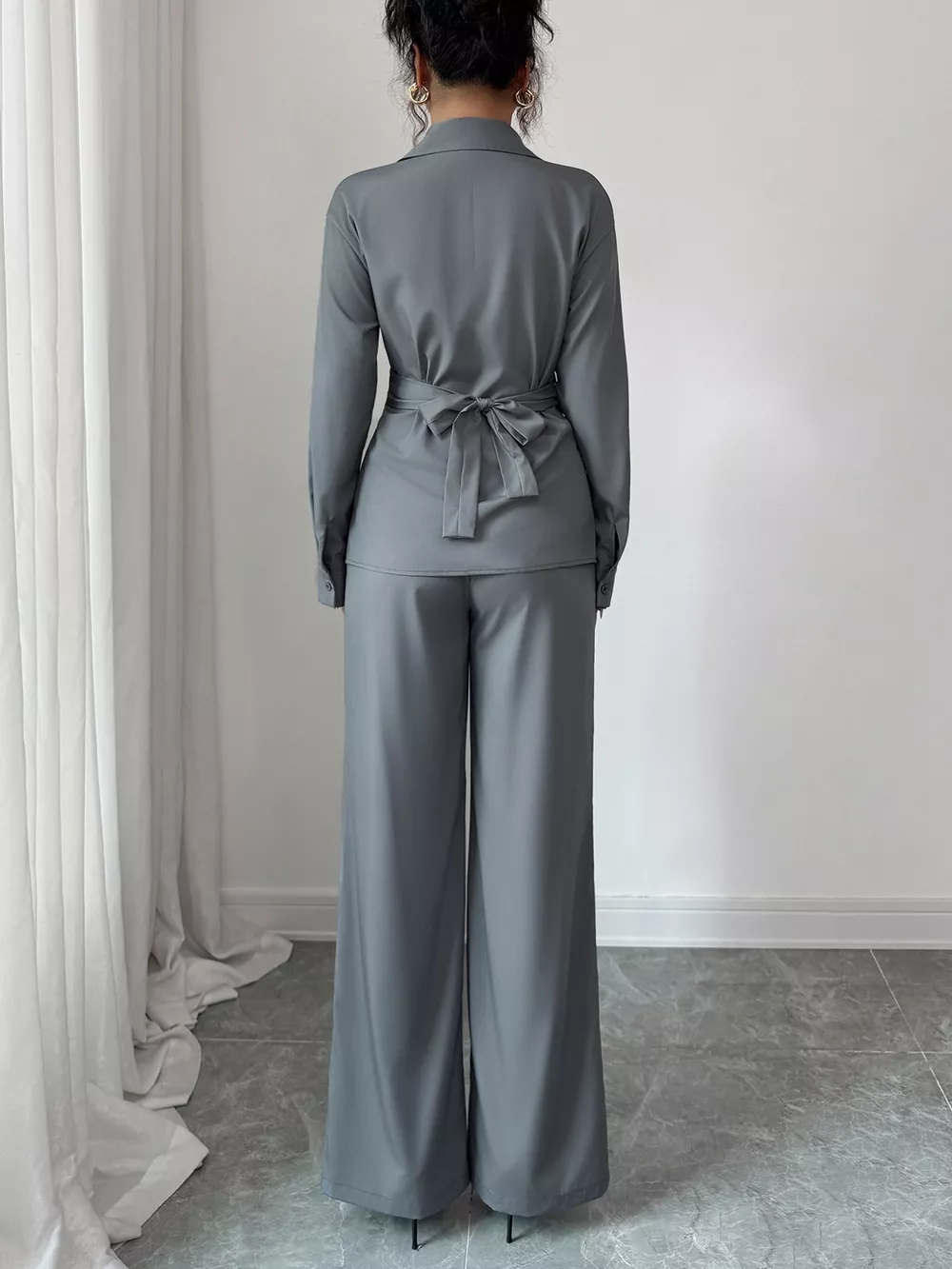 Back Tie Wrap Blazer and Wide Leg Pants Set