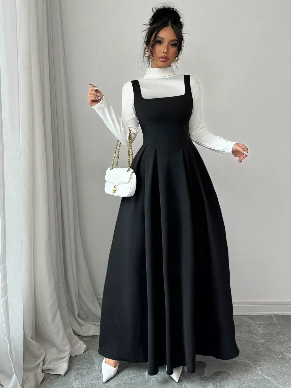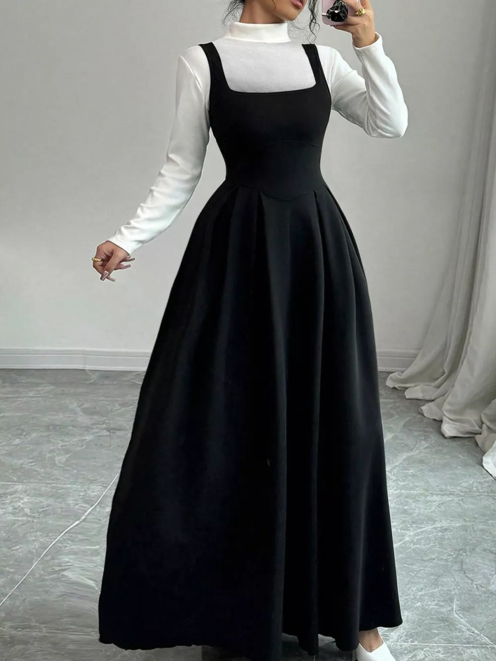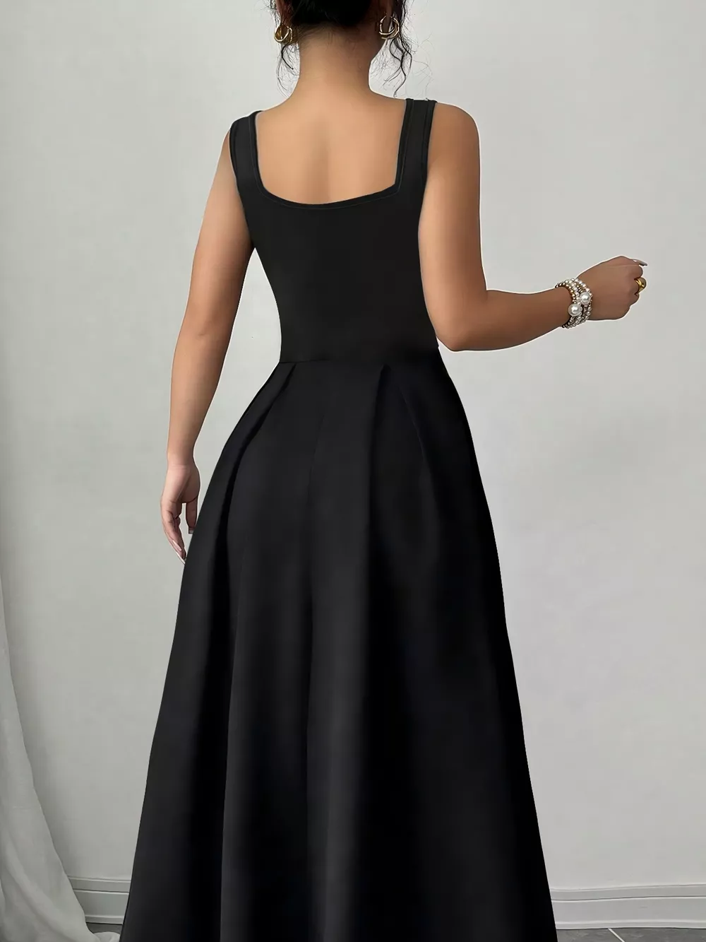 Sleeveless A-Line Maxi Dress with Square Neckline