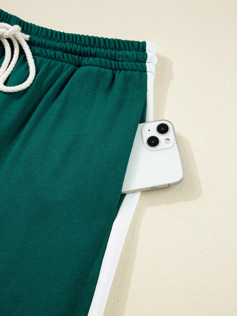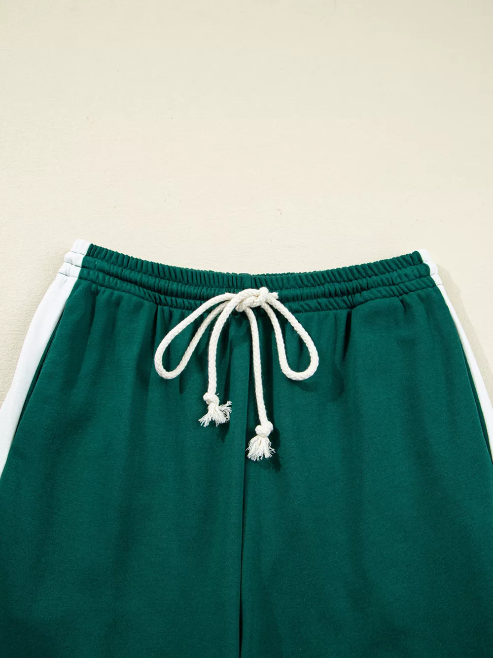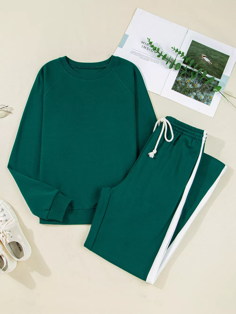 Round Neck Top and Stripe Detail Drawstring Pants Set