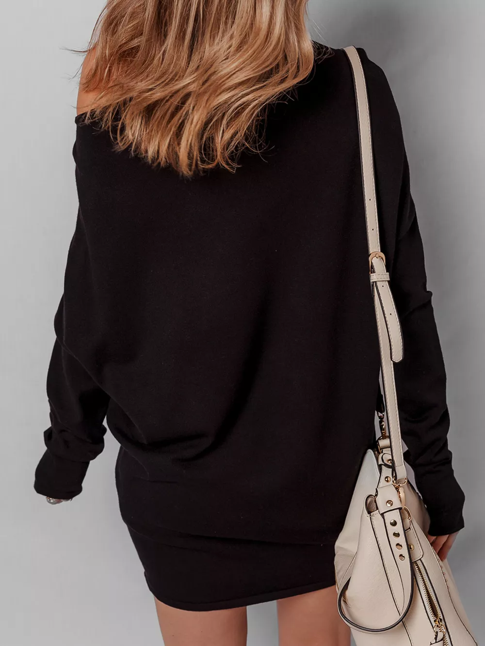 Asymmetric Neck Batwing Sleeve Shift Mini Sweater Dress