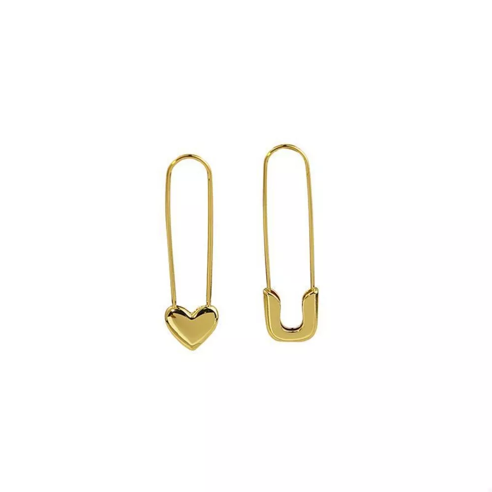 18K Gold-Plated Alloy Heart Safety Pin Drop Earrings