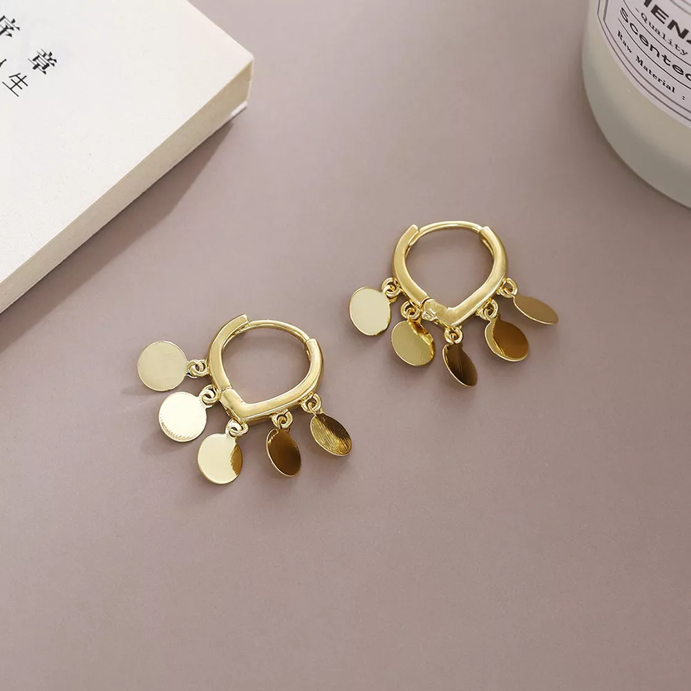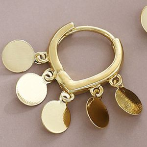 18K Gold-Plated Drop Hoop Earrings with Dangling Disc Charms