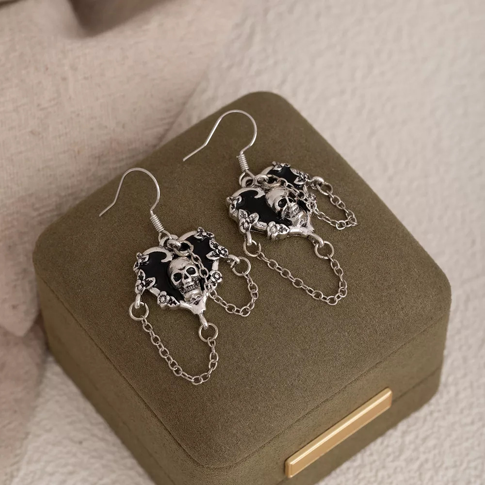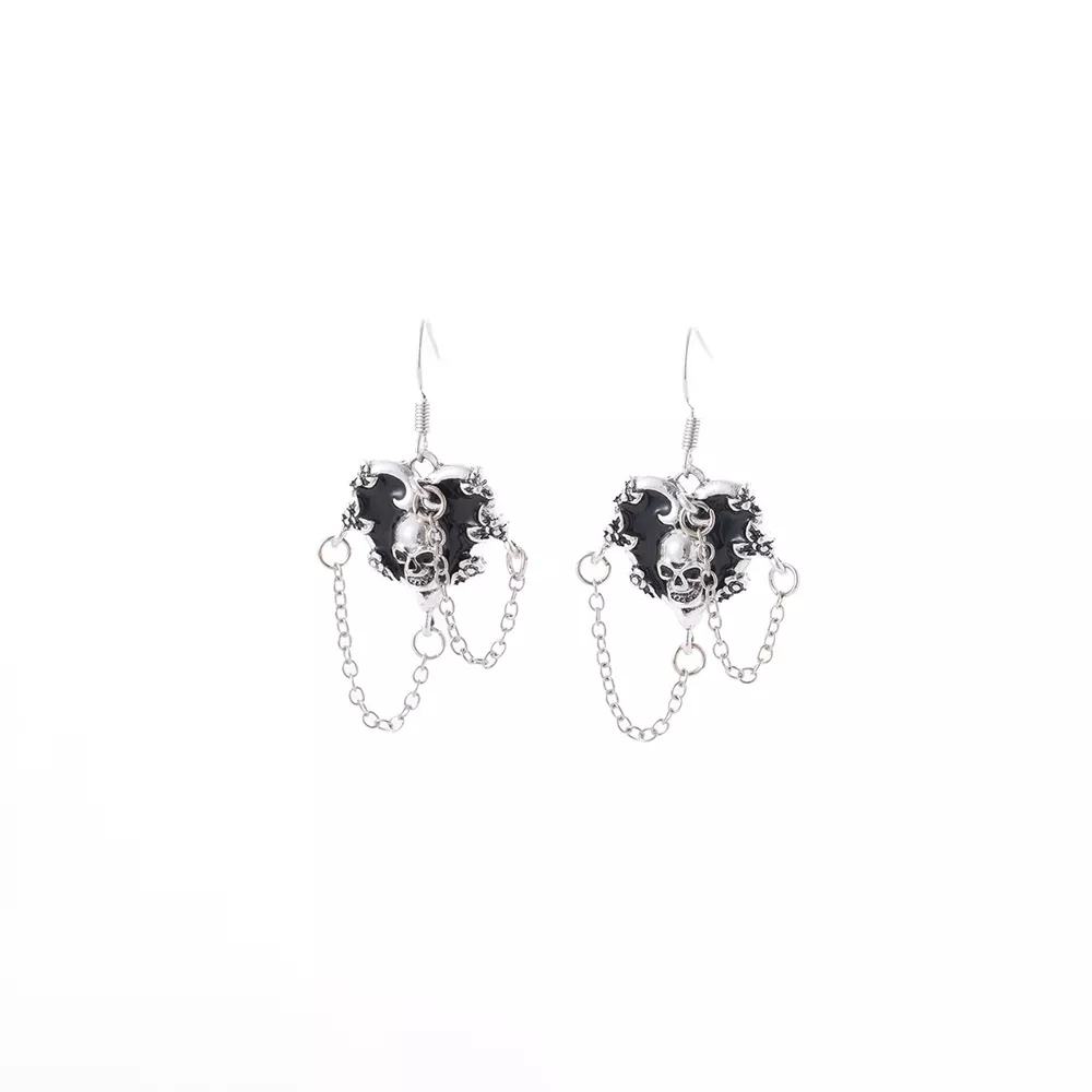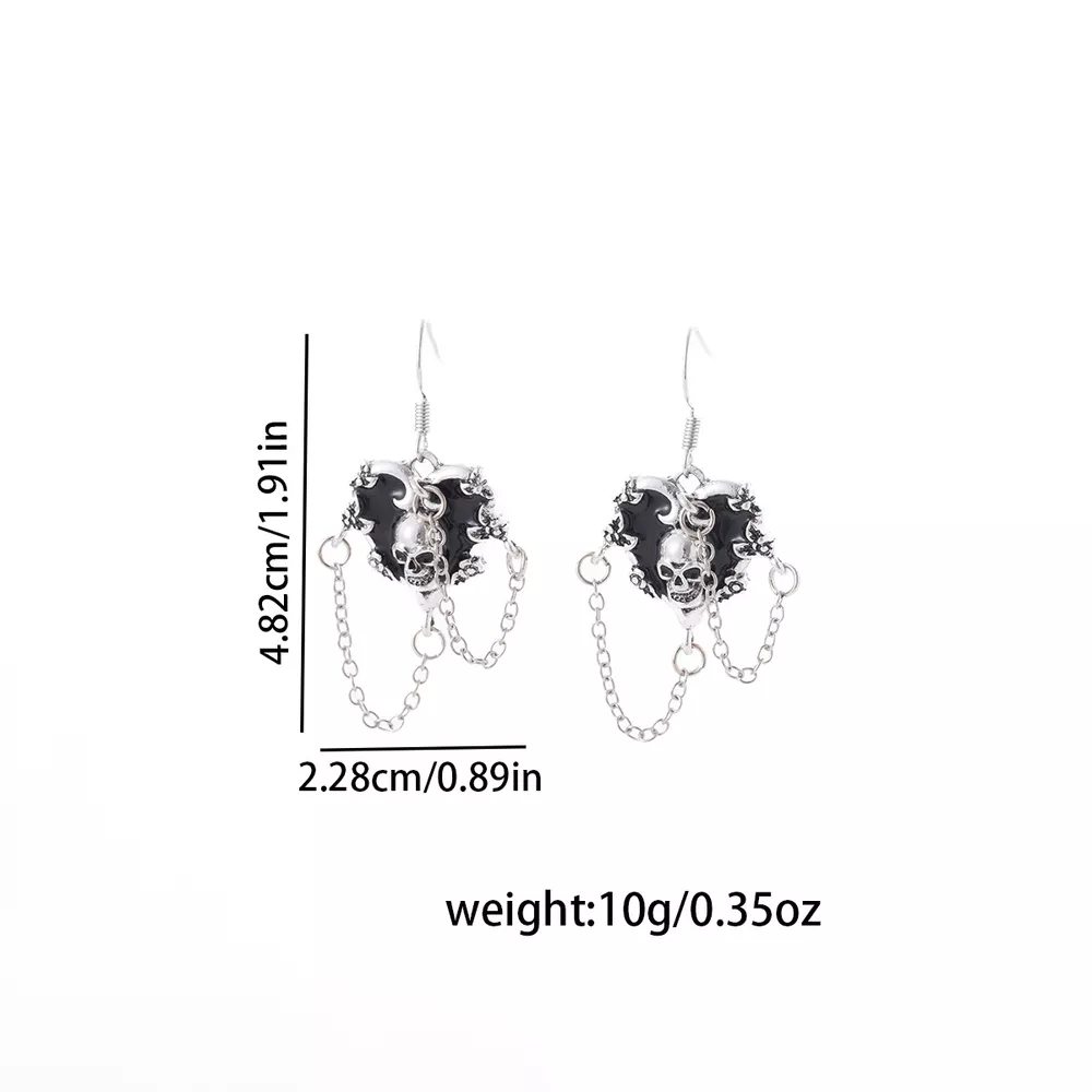 Halloween Alloy Heart Skull Earrings with Chain Detail