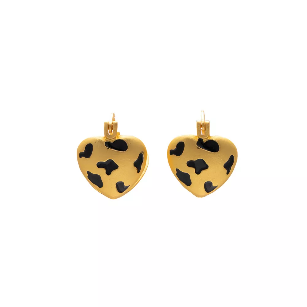 18K Gold-Plated Heart Leopard Print Statement Earrings