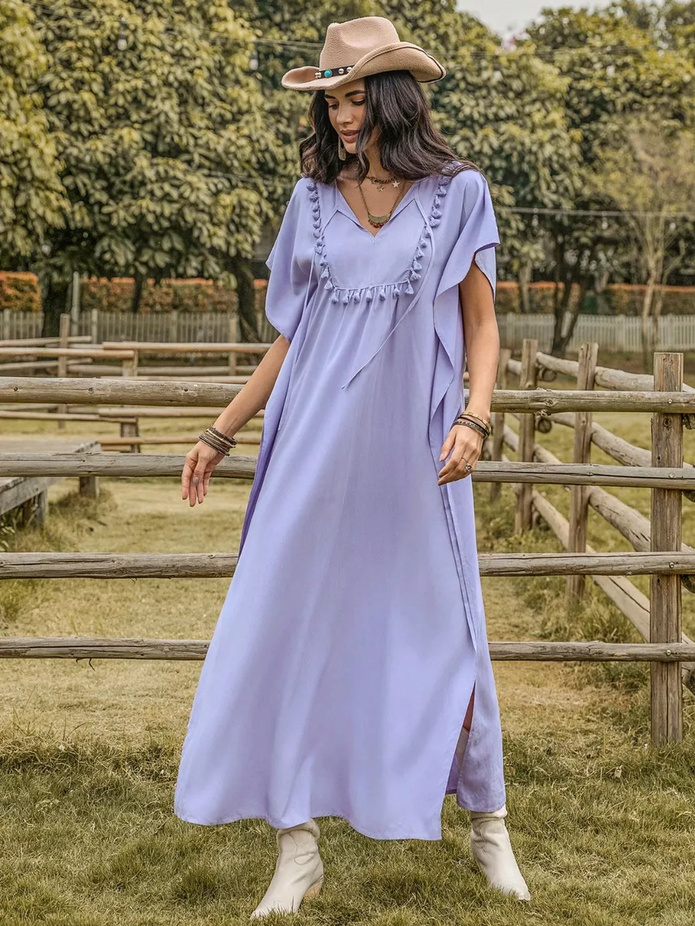 - Features:Slit,Tassel,Tied