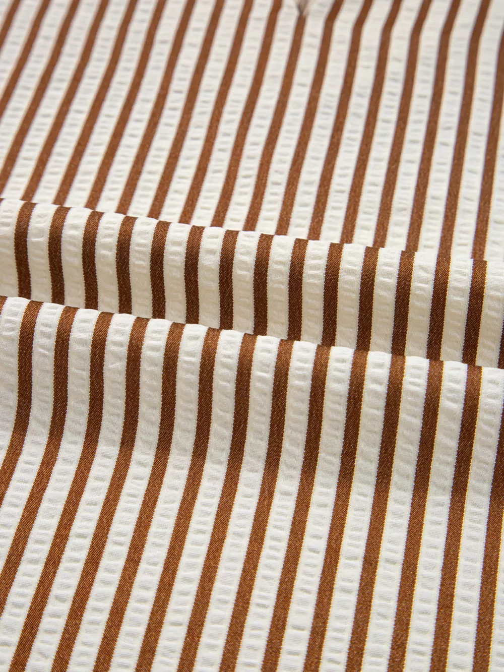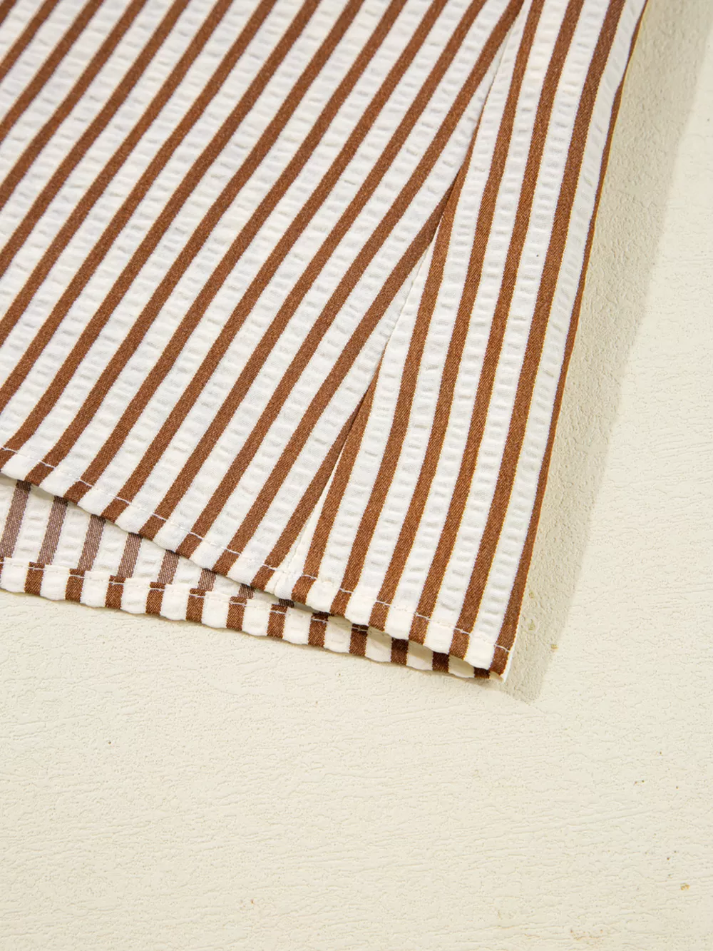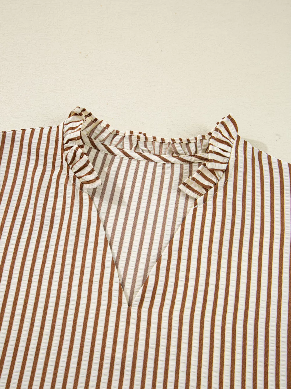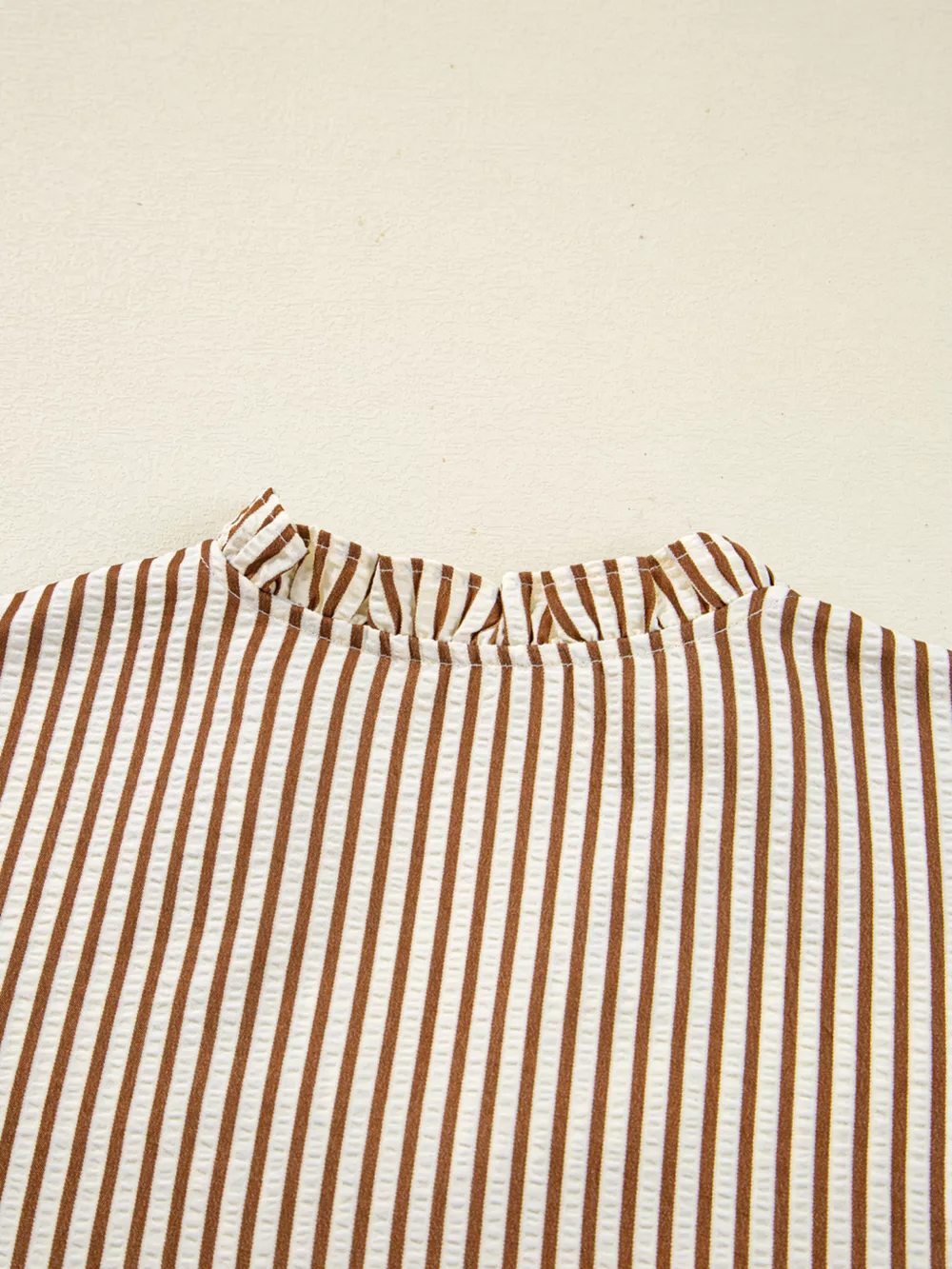 Striped Ruffled Neck Blouse with Tie Sleeves
