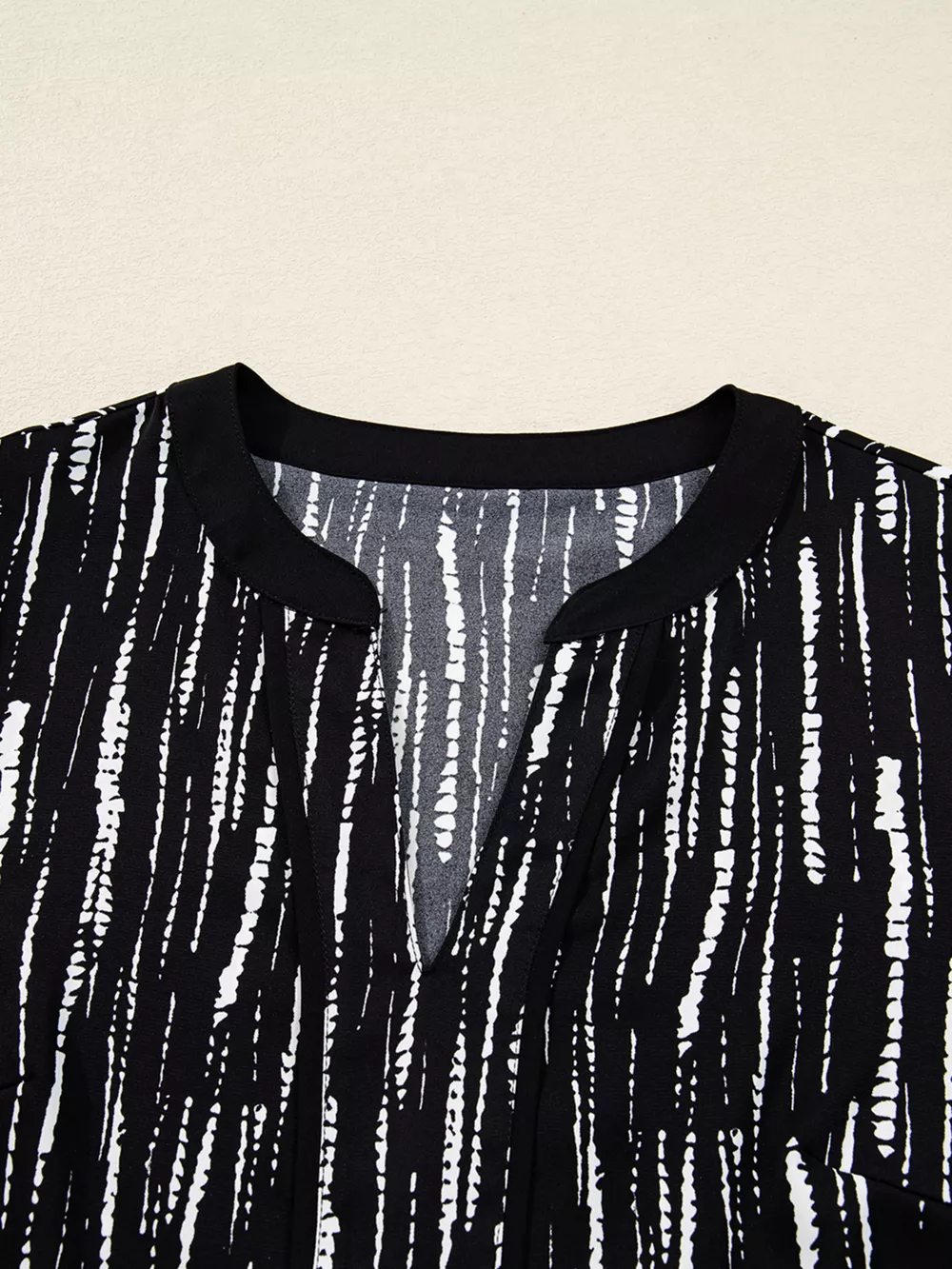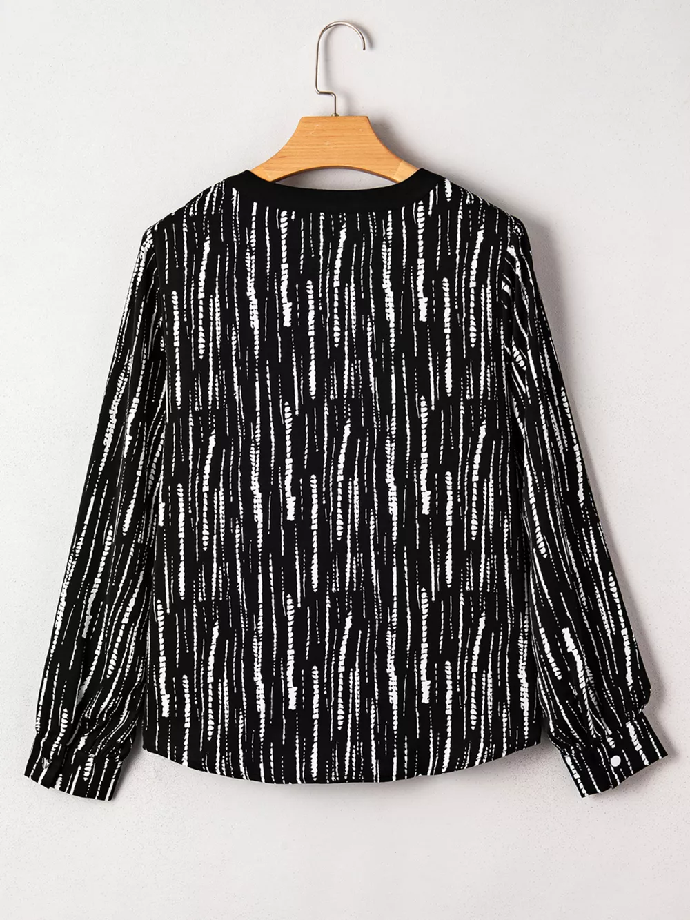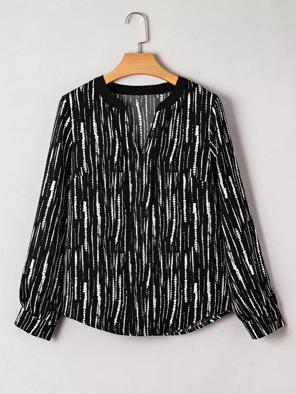 Abstract Printed Notched Long Sleeve Blouse