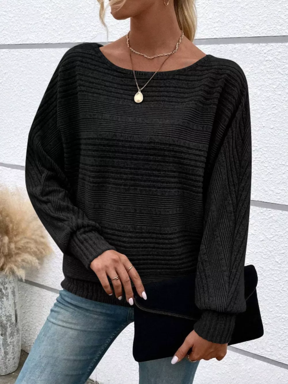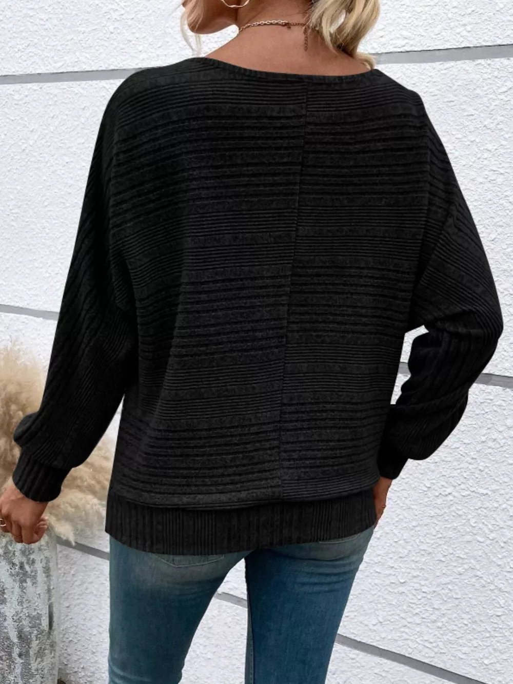 Ribbed Round Neck Long Sleeve Top