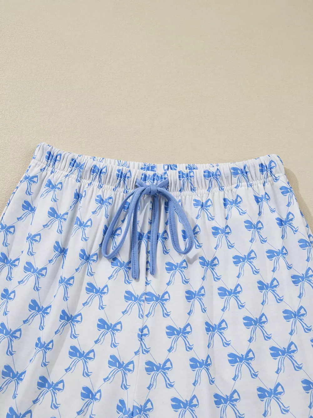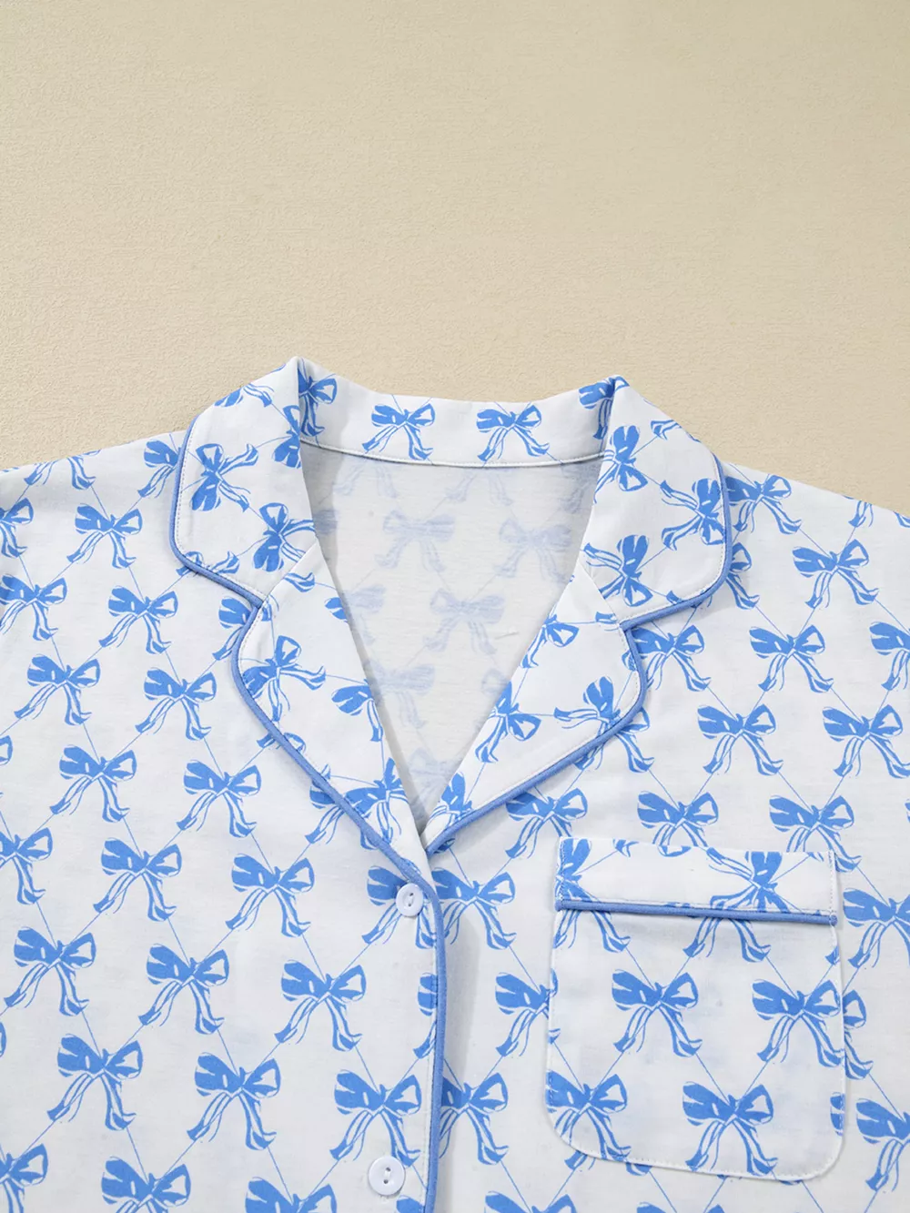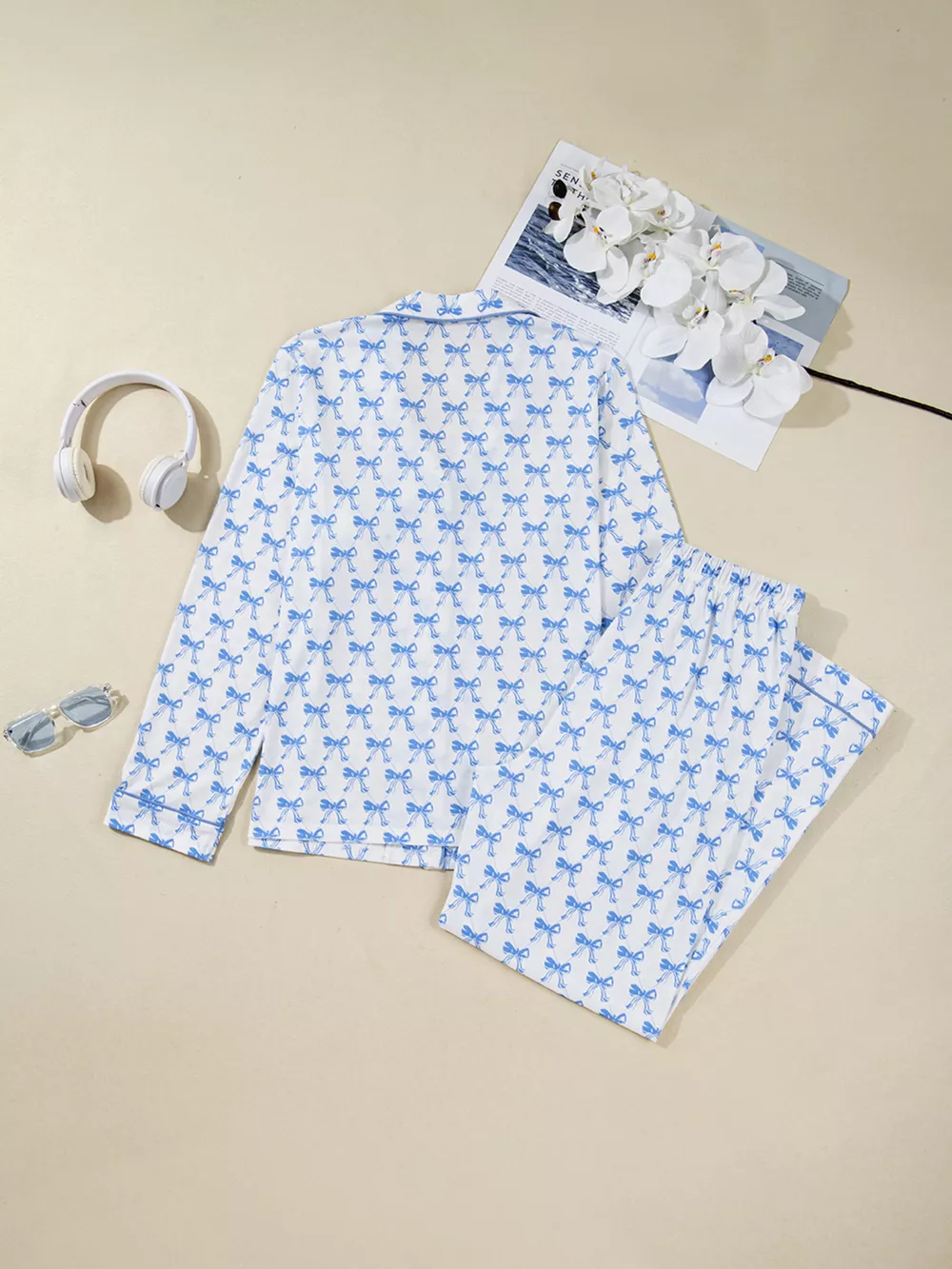 Bow Print Long Sleeve Shirt and Pants Pajama Set