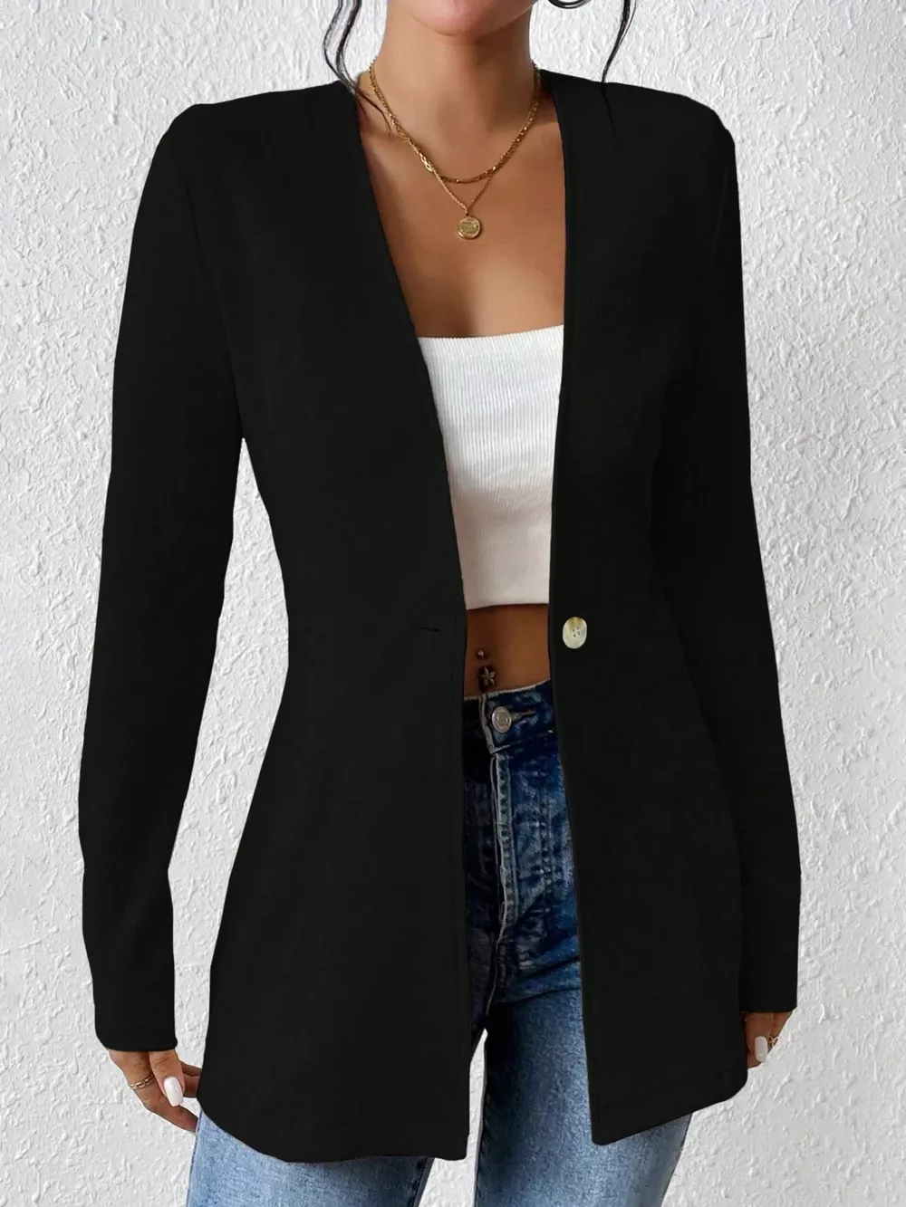 One Button Long Sleeve Blazer
