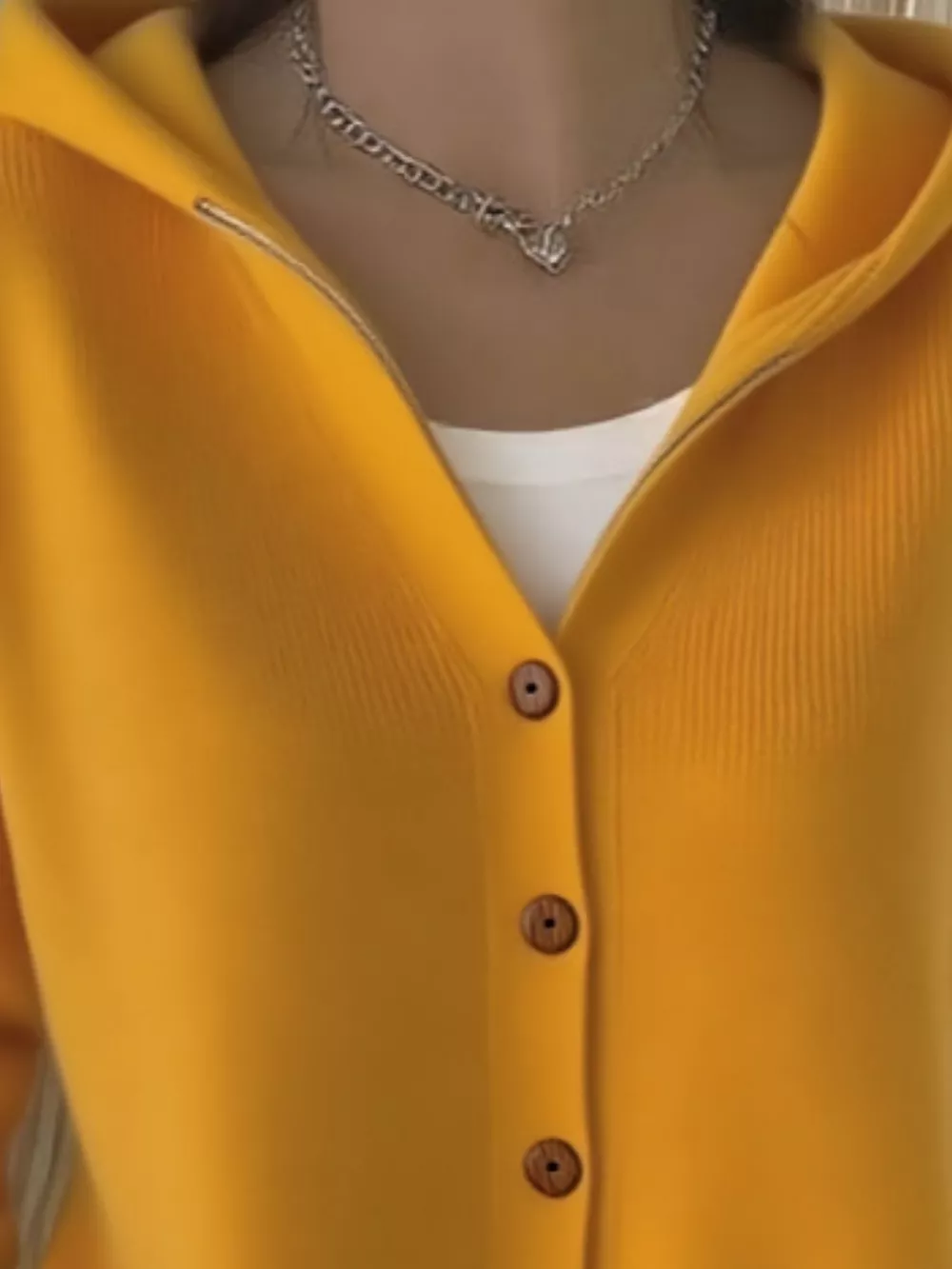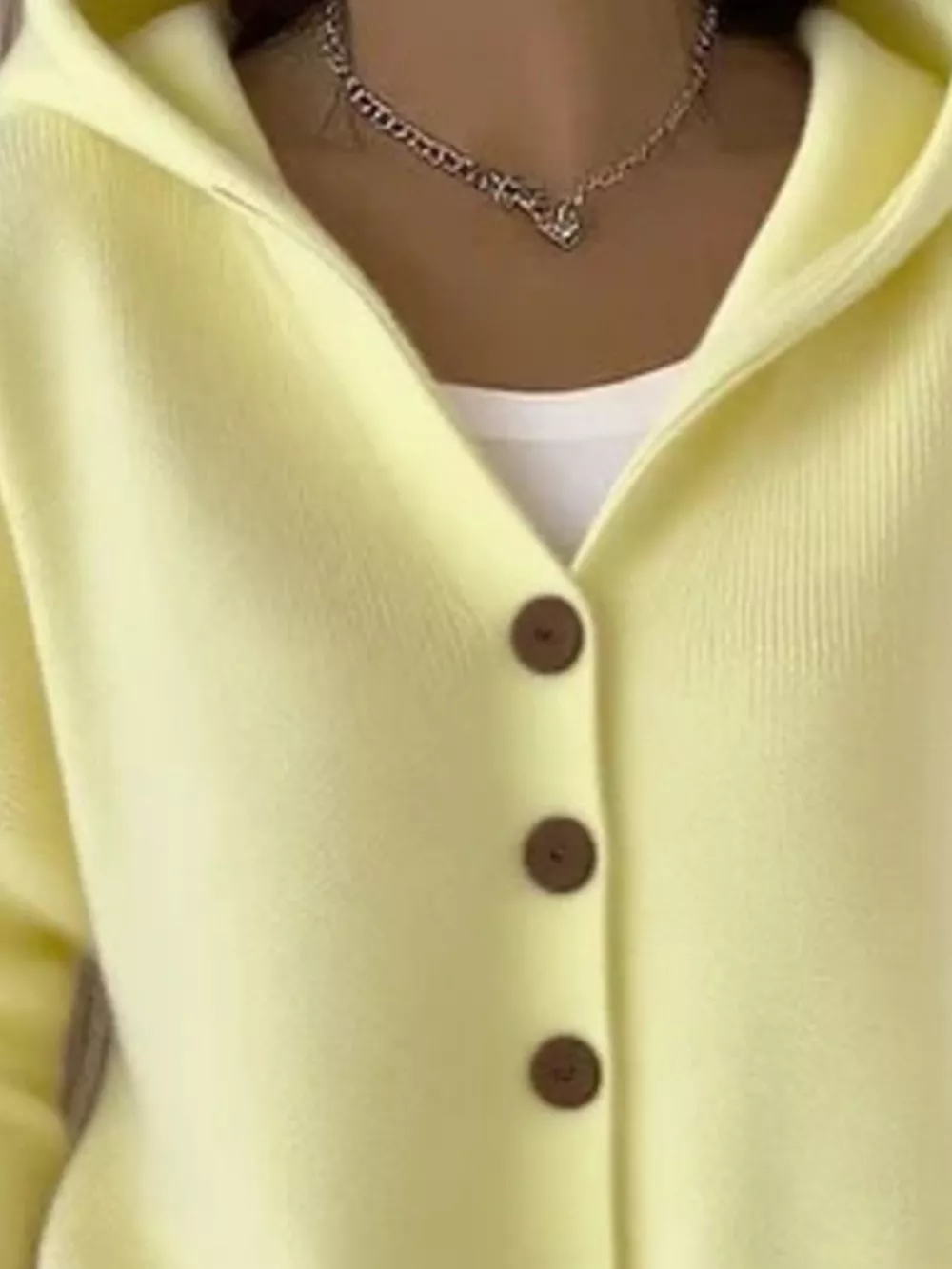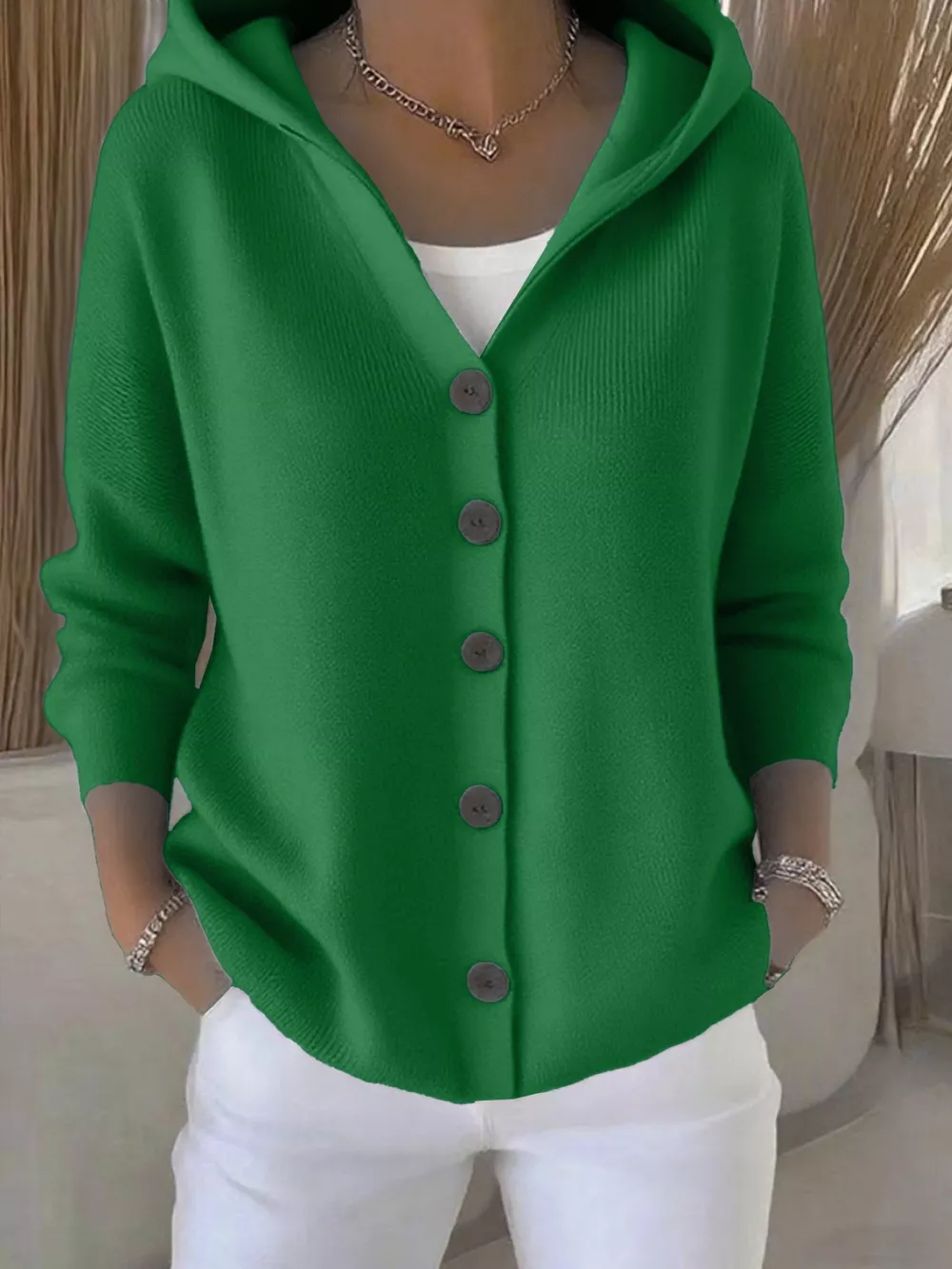 Full Size Hooded Button-Front Soft Knit Cardigan Plus Size