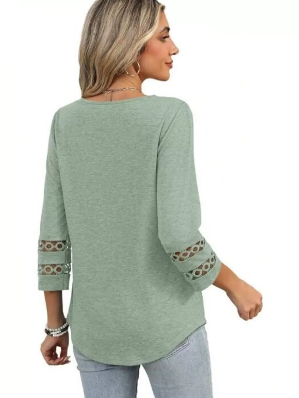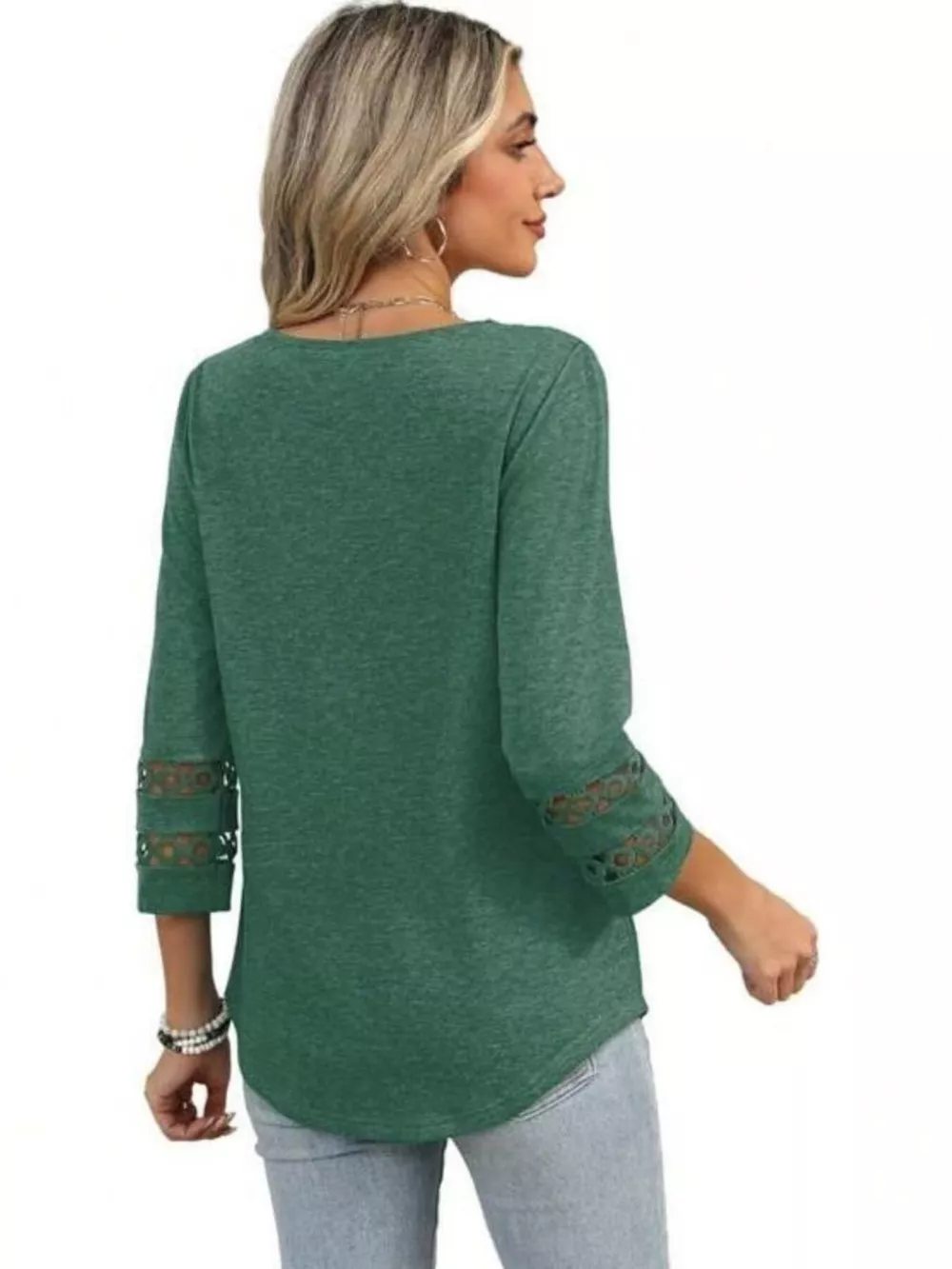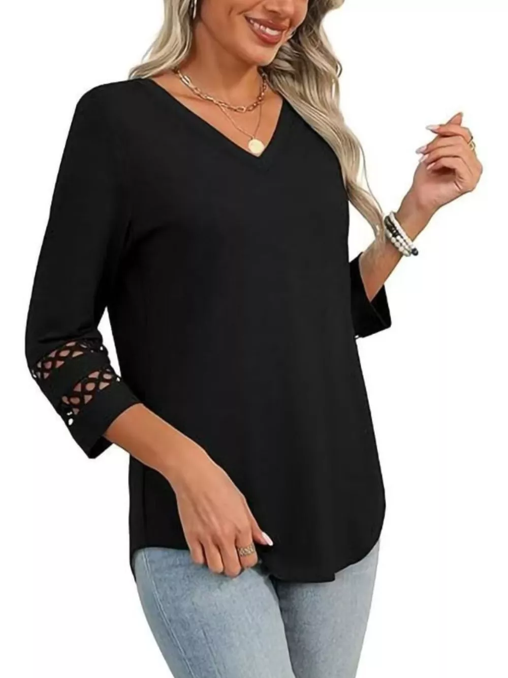 Full Size V-Neck 3/4 Sleeve T-Shirt Plus Size