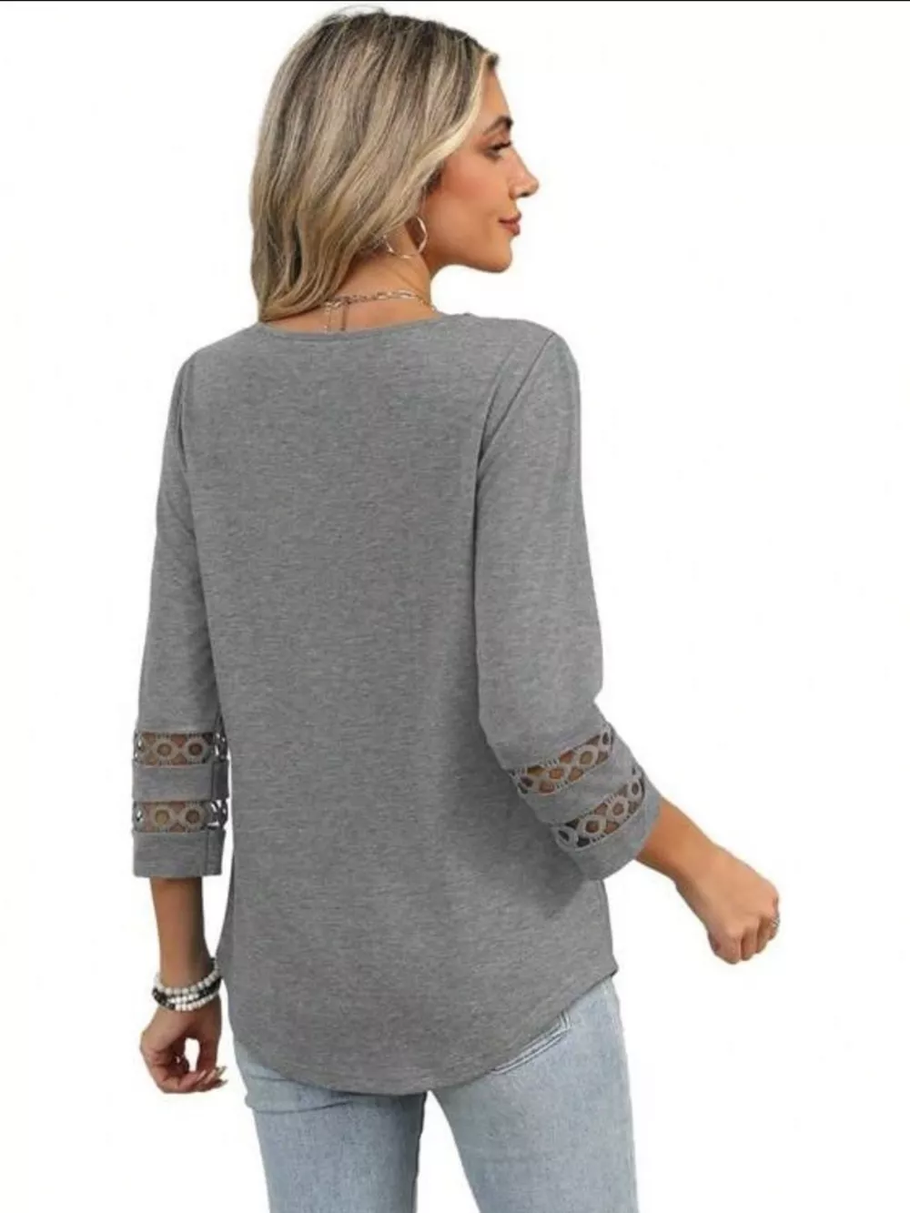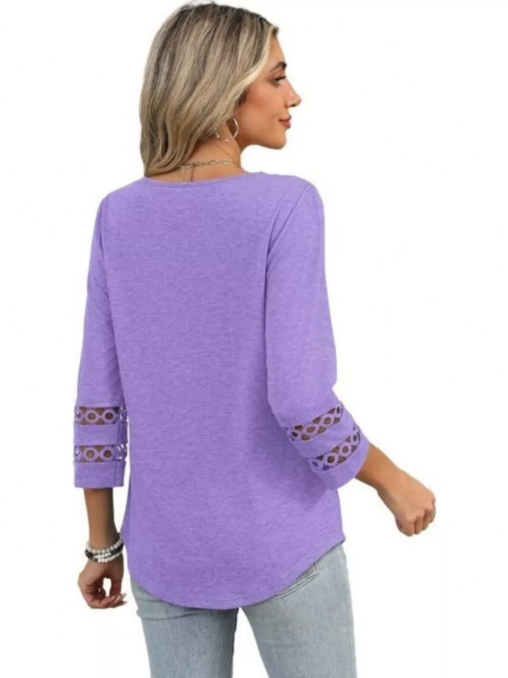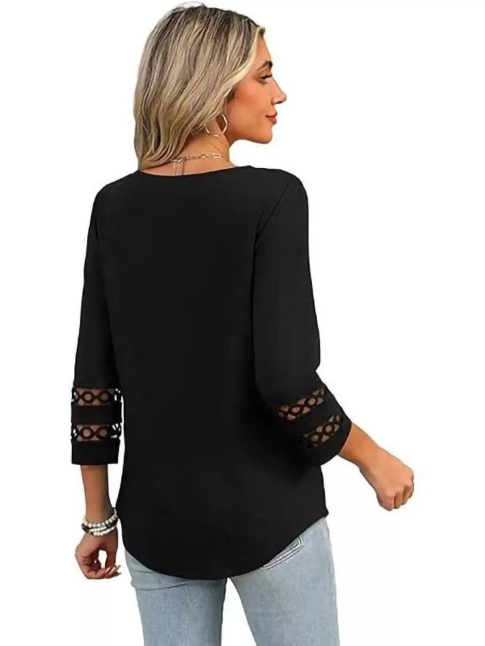 Full Size V-Neck 3/4 Sleeve T-Shirt Plus Size