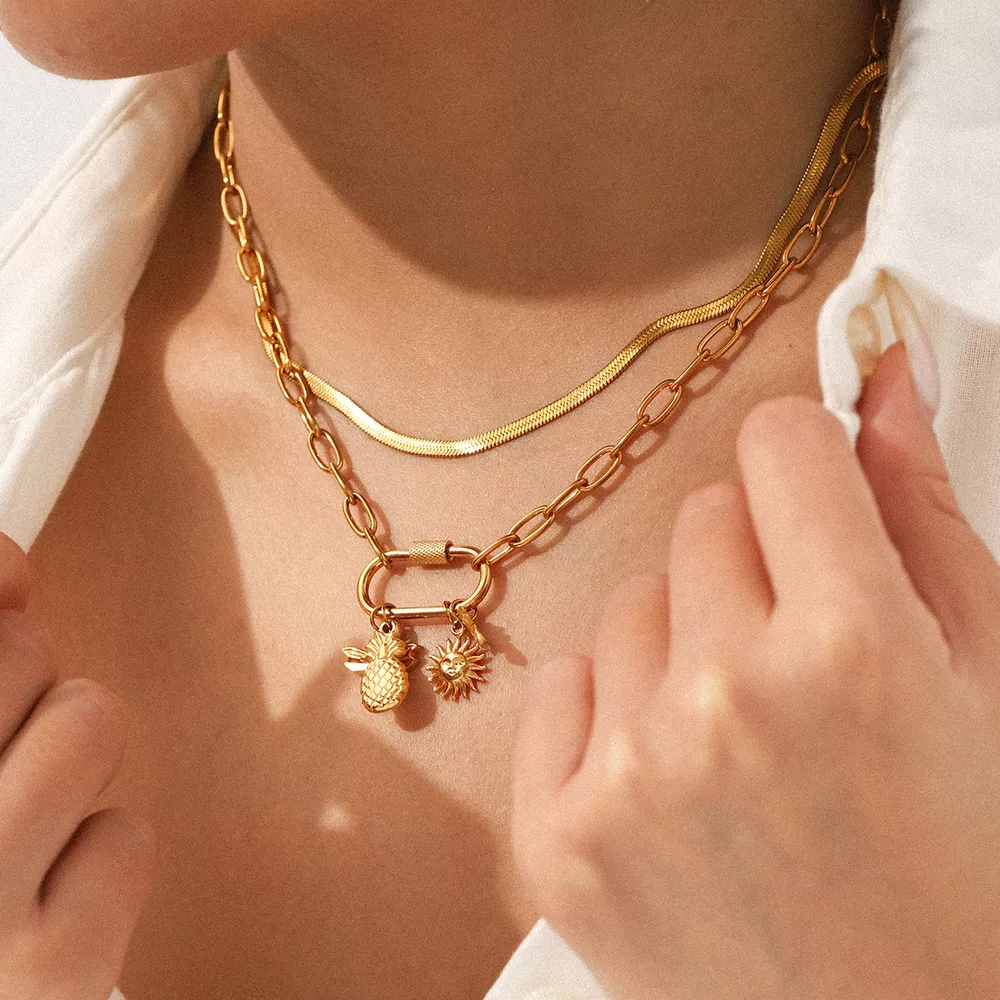 18K Gold-Plated Lock Chain Necklace