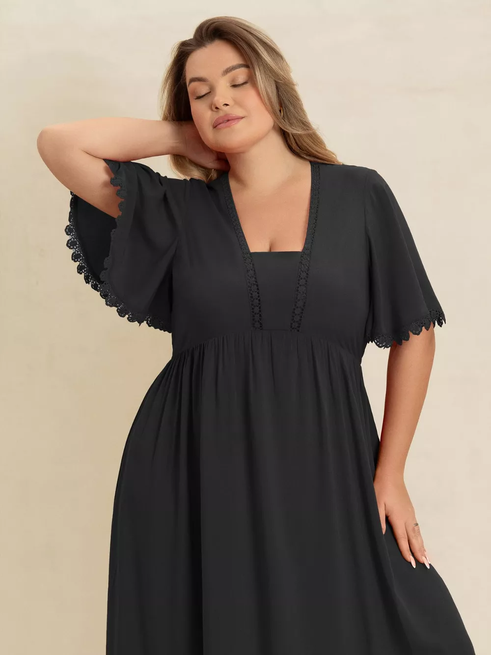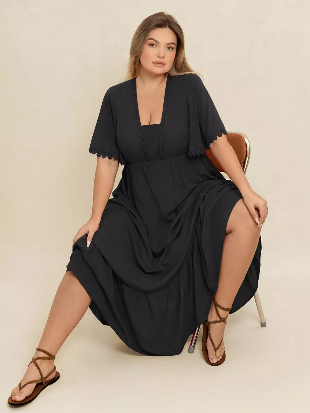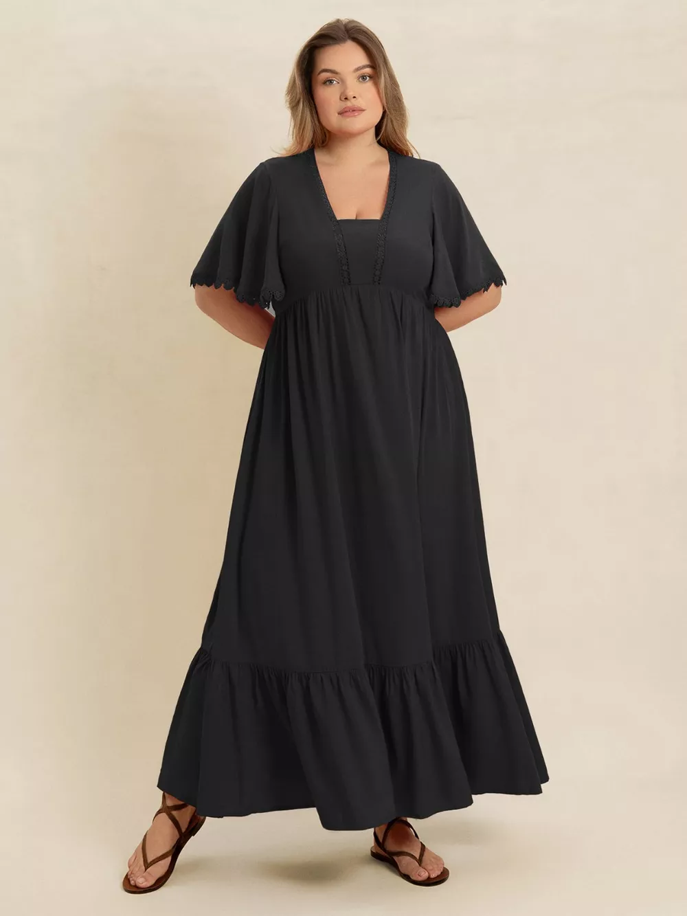 Plus Size Boho Ruffled Maxi Dress with Flutter Sleeves