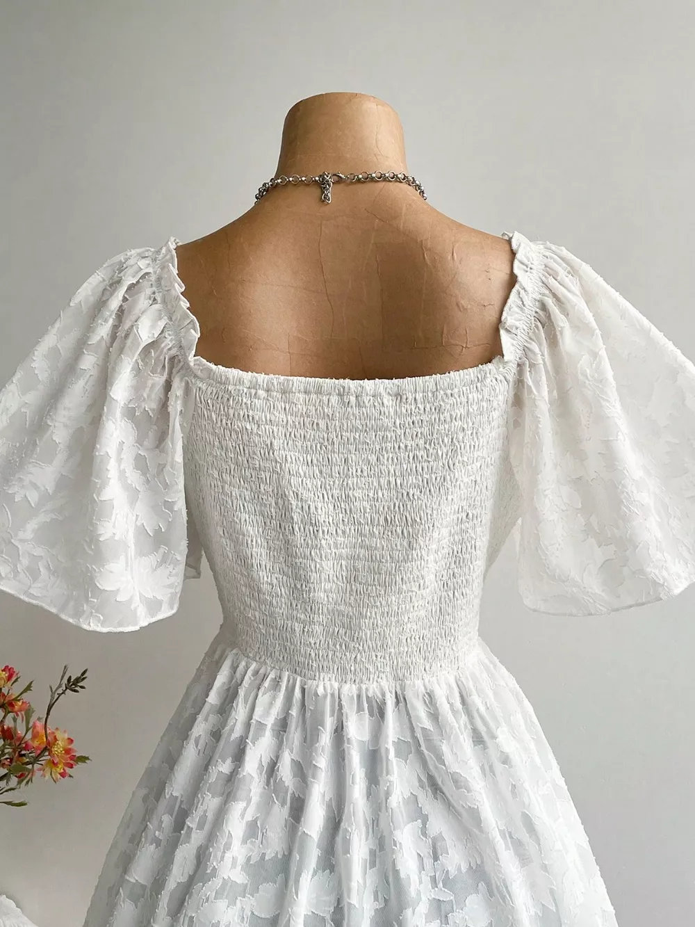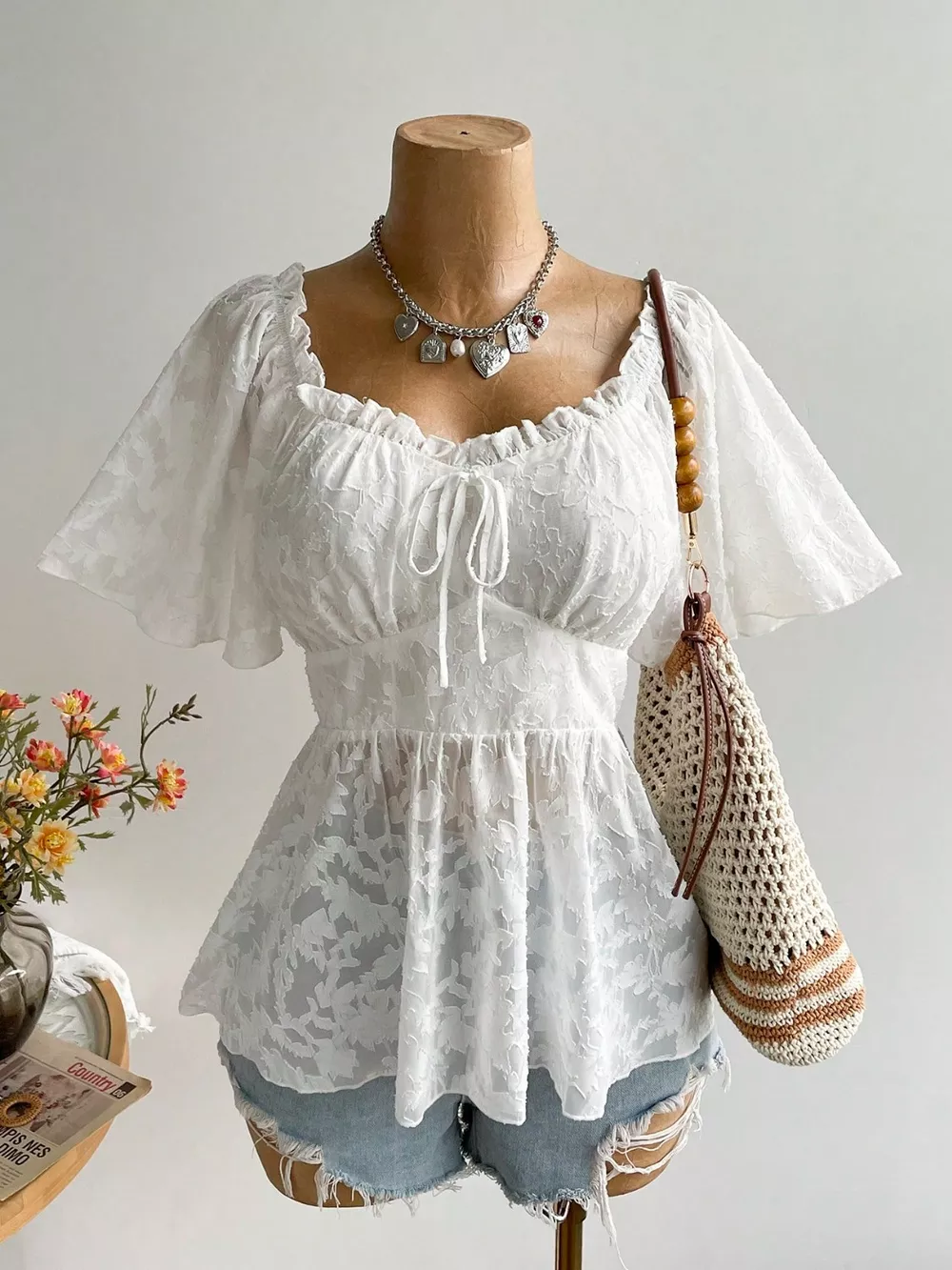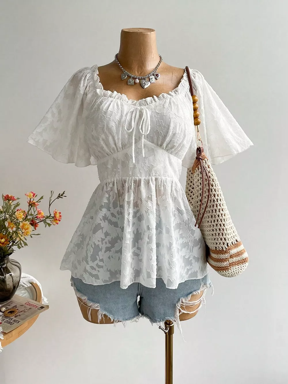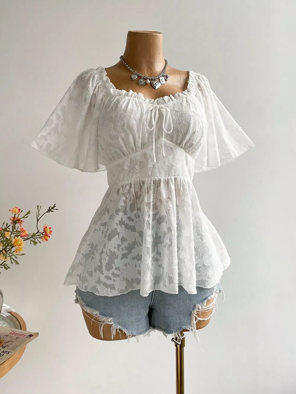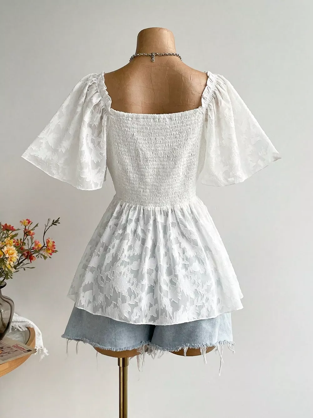 Plus Size Floral Flutter Sleeve Blouse with Smocked Back