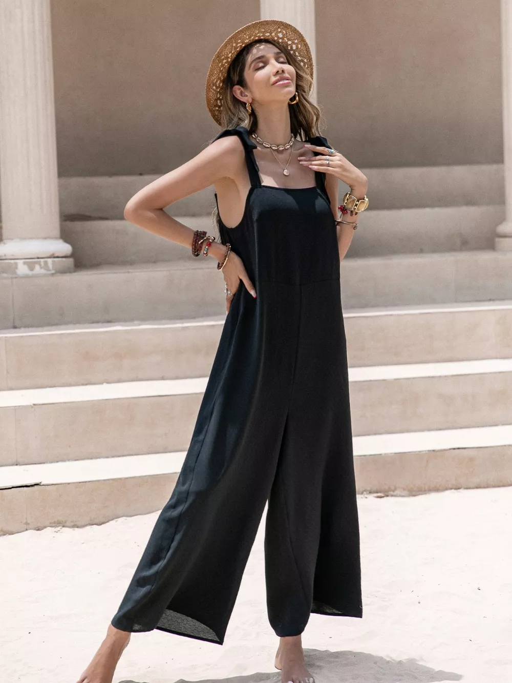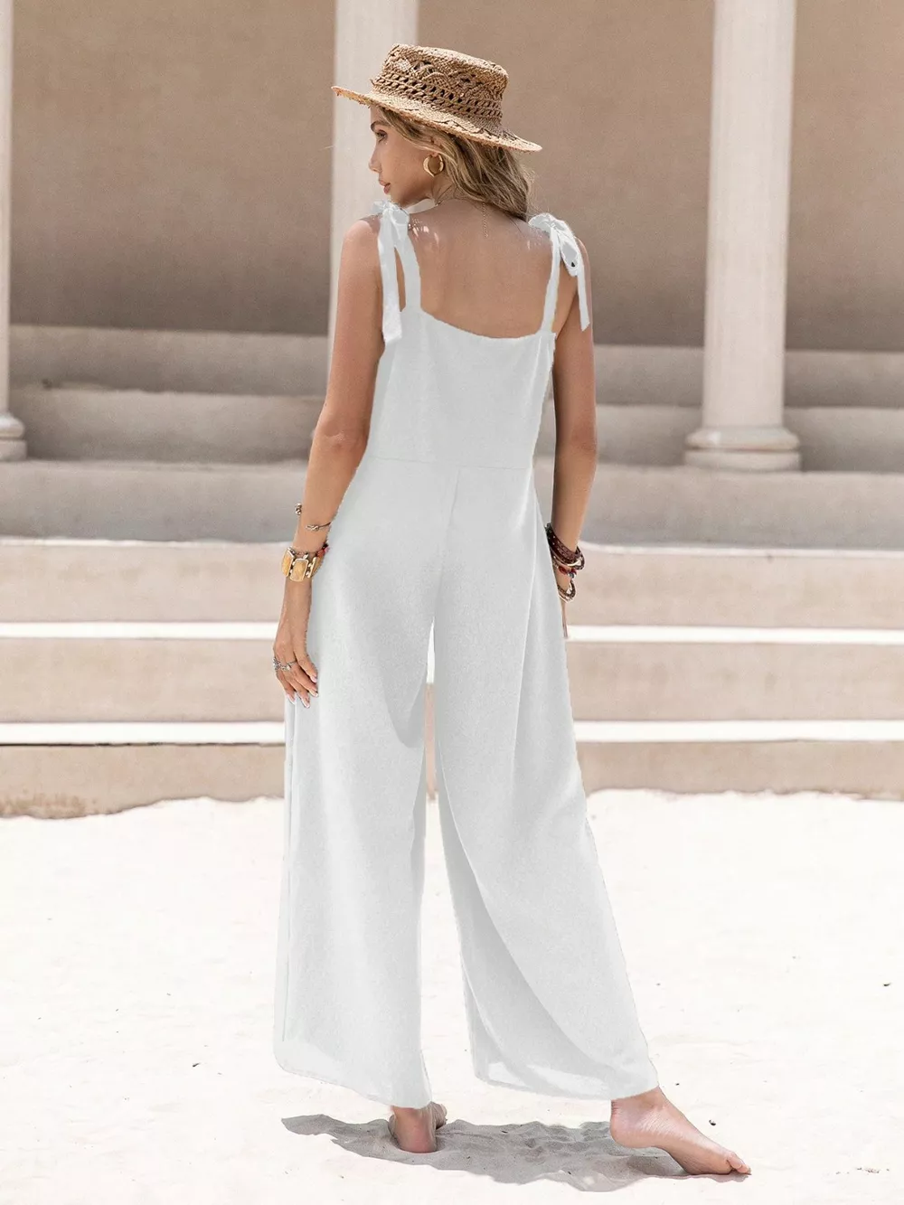 Sleeveless Wide Leg Jumpsuit with Tie Shoulder