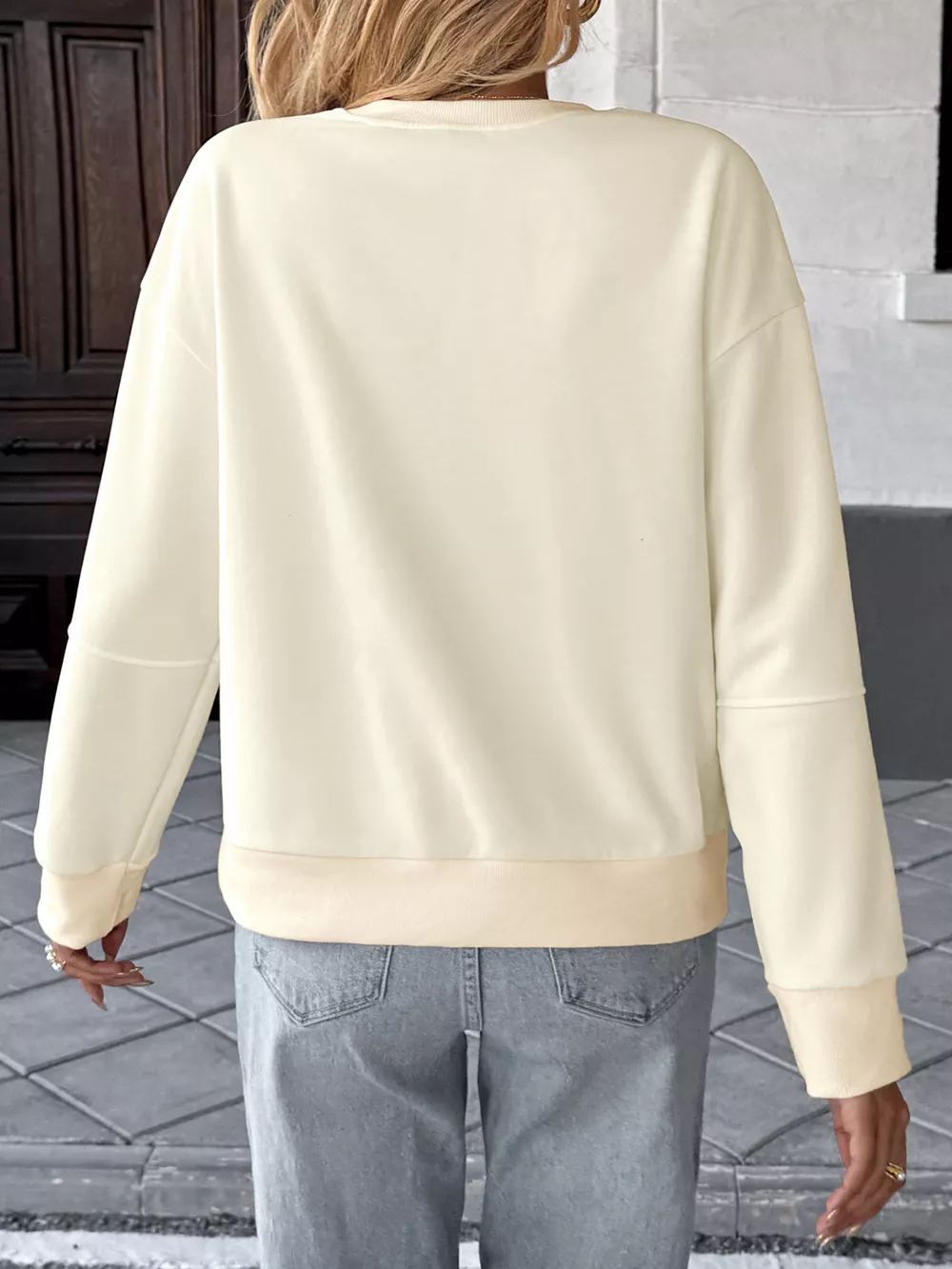 Bow Round Neck Dropped Shoulder Sweatshirt