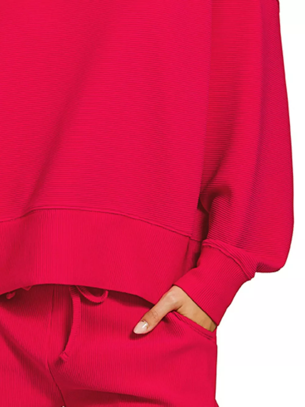 Detailed description of the Zenana Ribbed Round Neck Pullover and Shorts Set, highlighting quality, design, and unique features that make it appealing to end consumers.