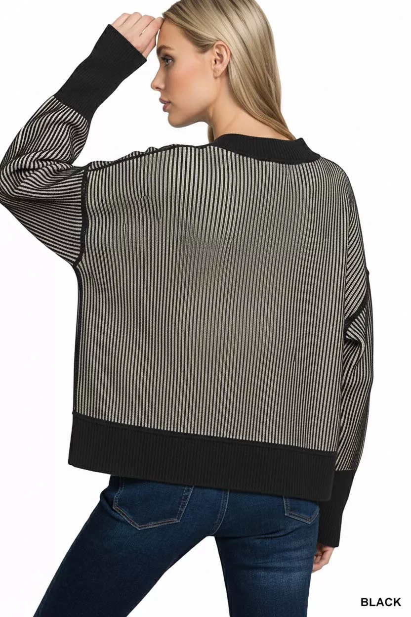 Zenana Ribbed Exposed Seam Two Tone Sweater