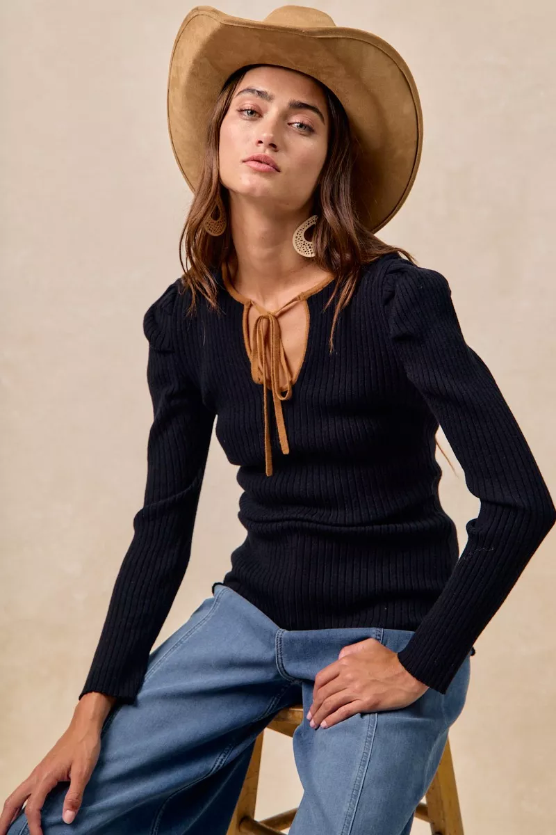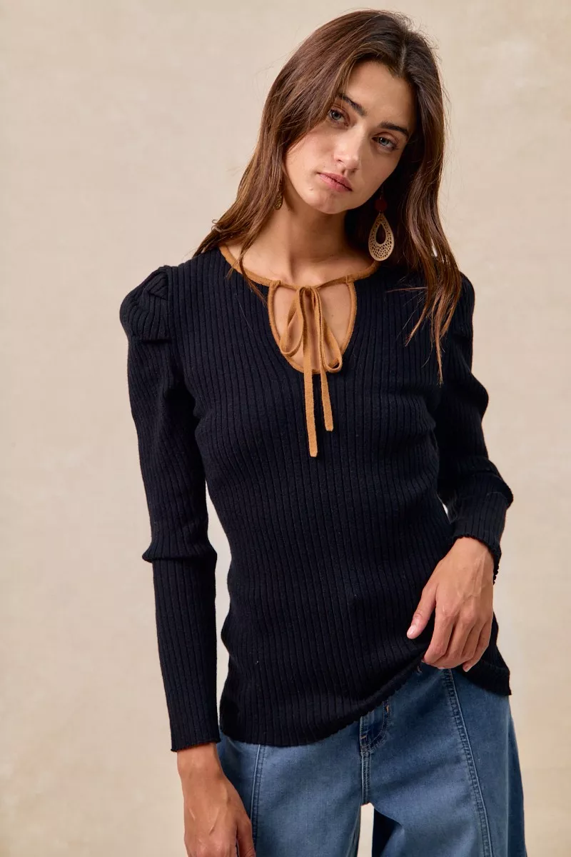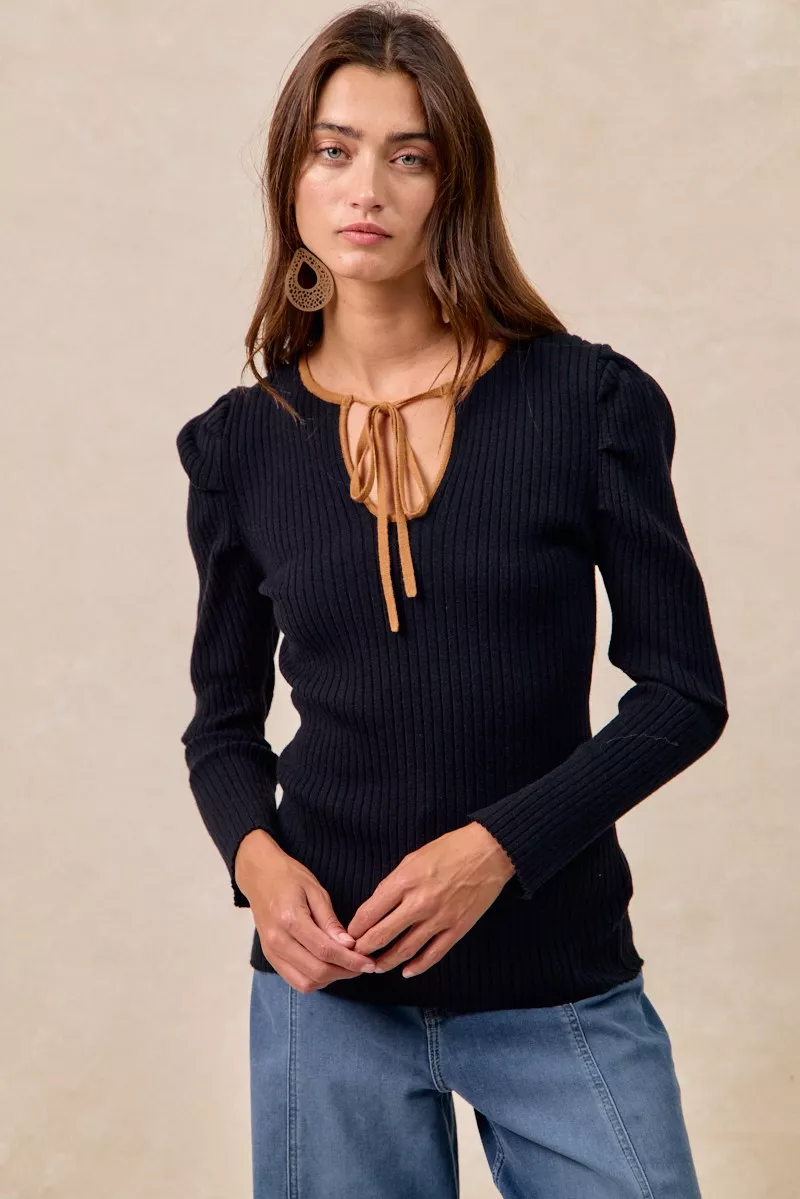 BiBi Ribbed Contrast Front Tied Top with Shrried