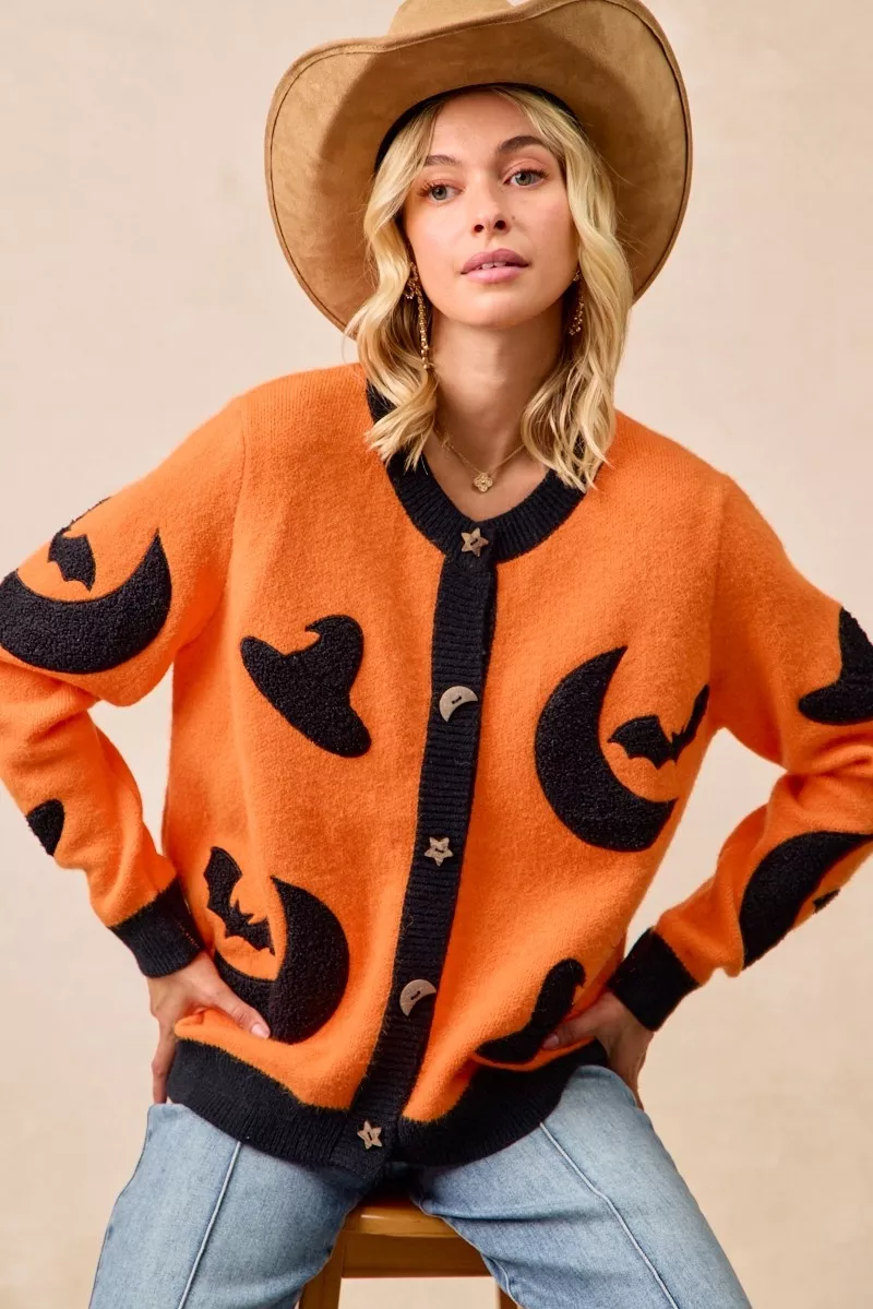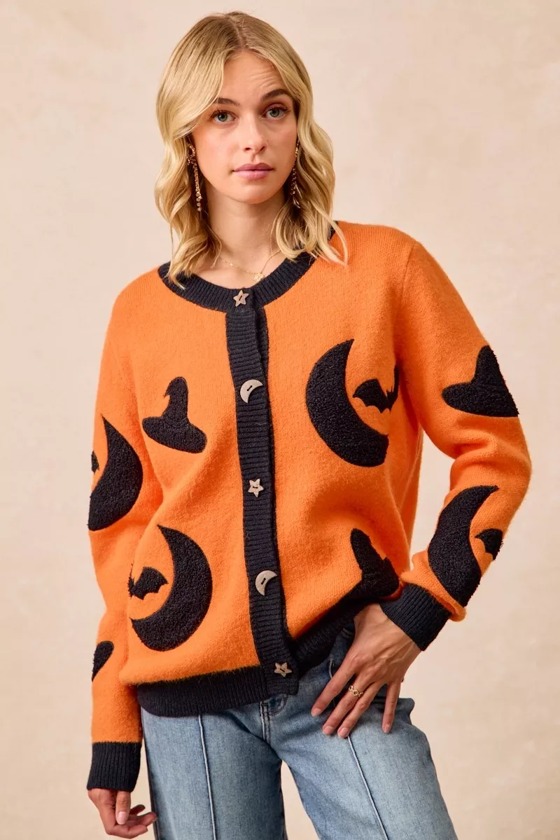 BiBi Halloween Witch Hat Moon Bat Artwork Cardigan