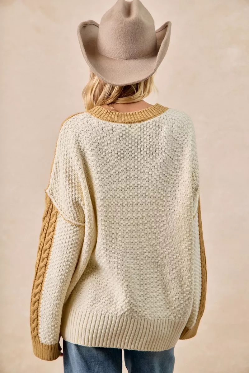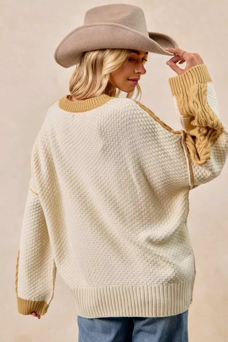 BiBi Cable Knit With Hacci Combo Sweater With Uneven Hem Detail