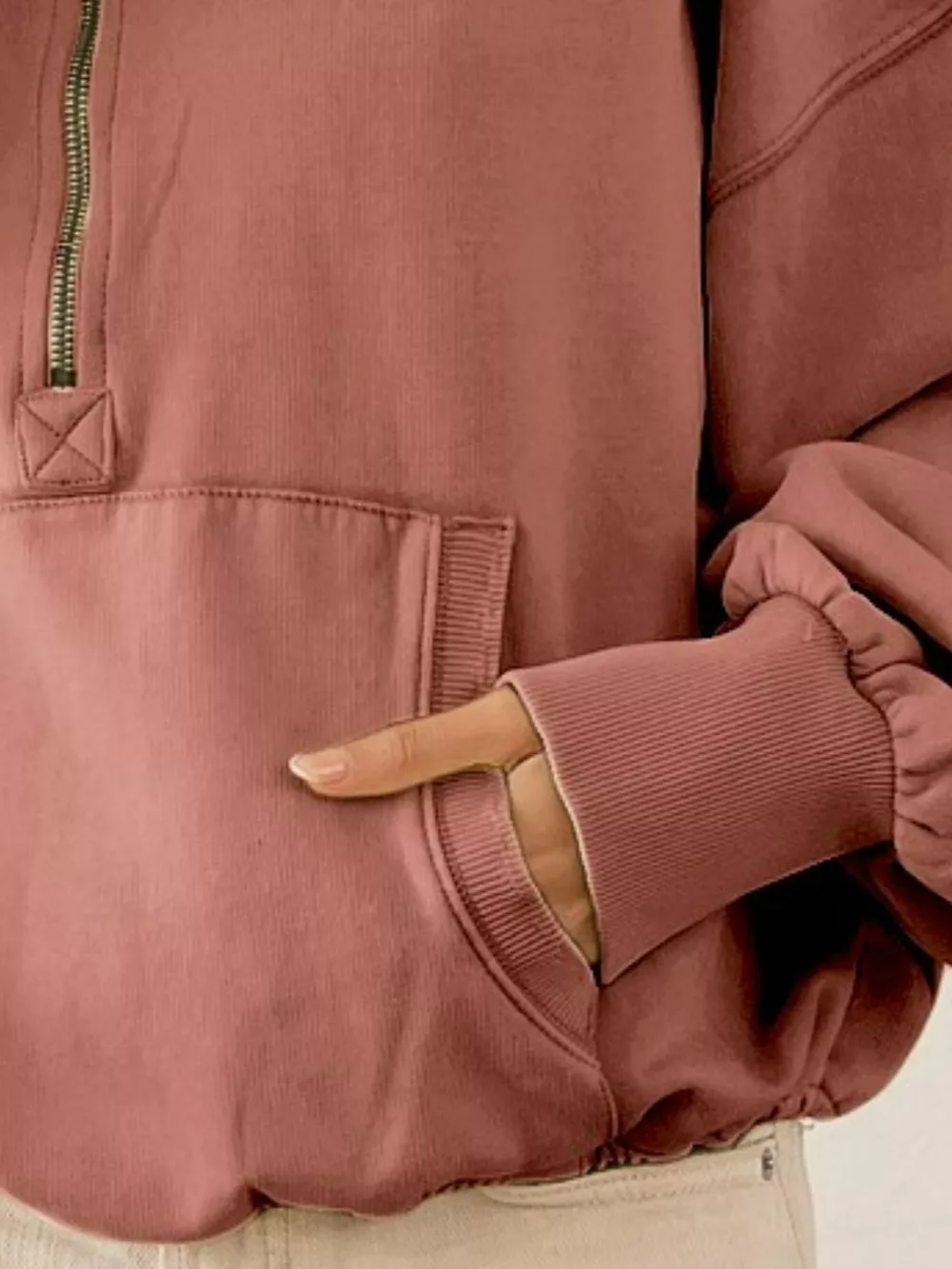 BiBi Stitch Detailed Elastic Hem Half Zip Fleece Hoodie