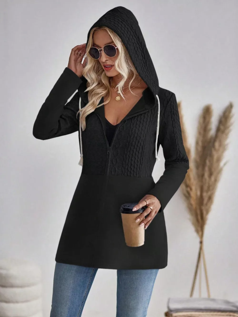 Drawstring Textured Zip Up Drawstring Hooded Jacket