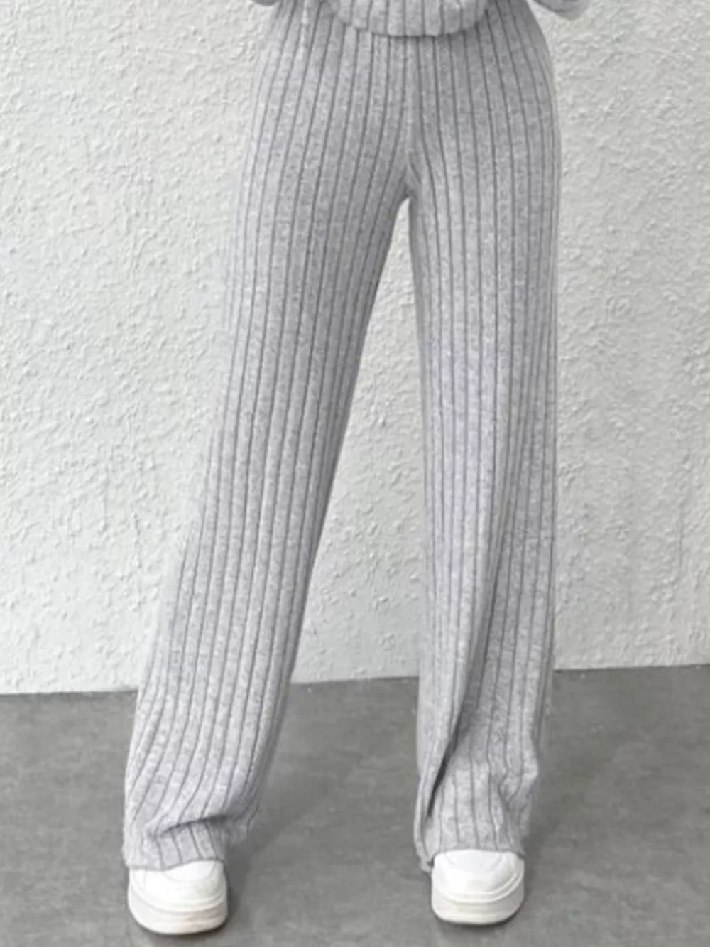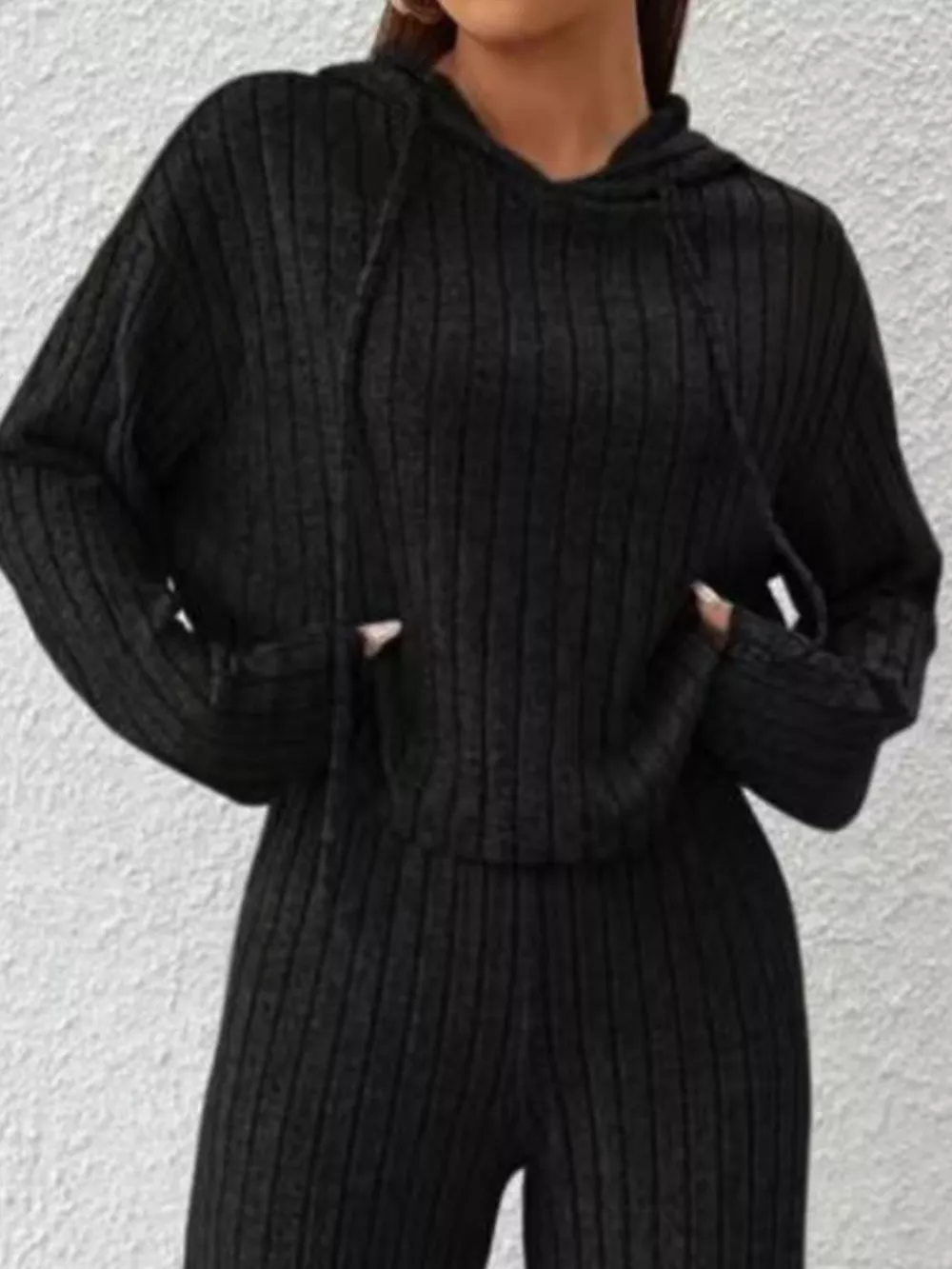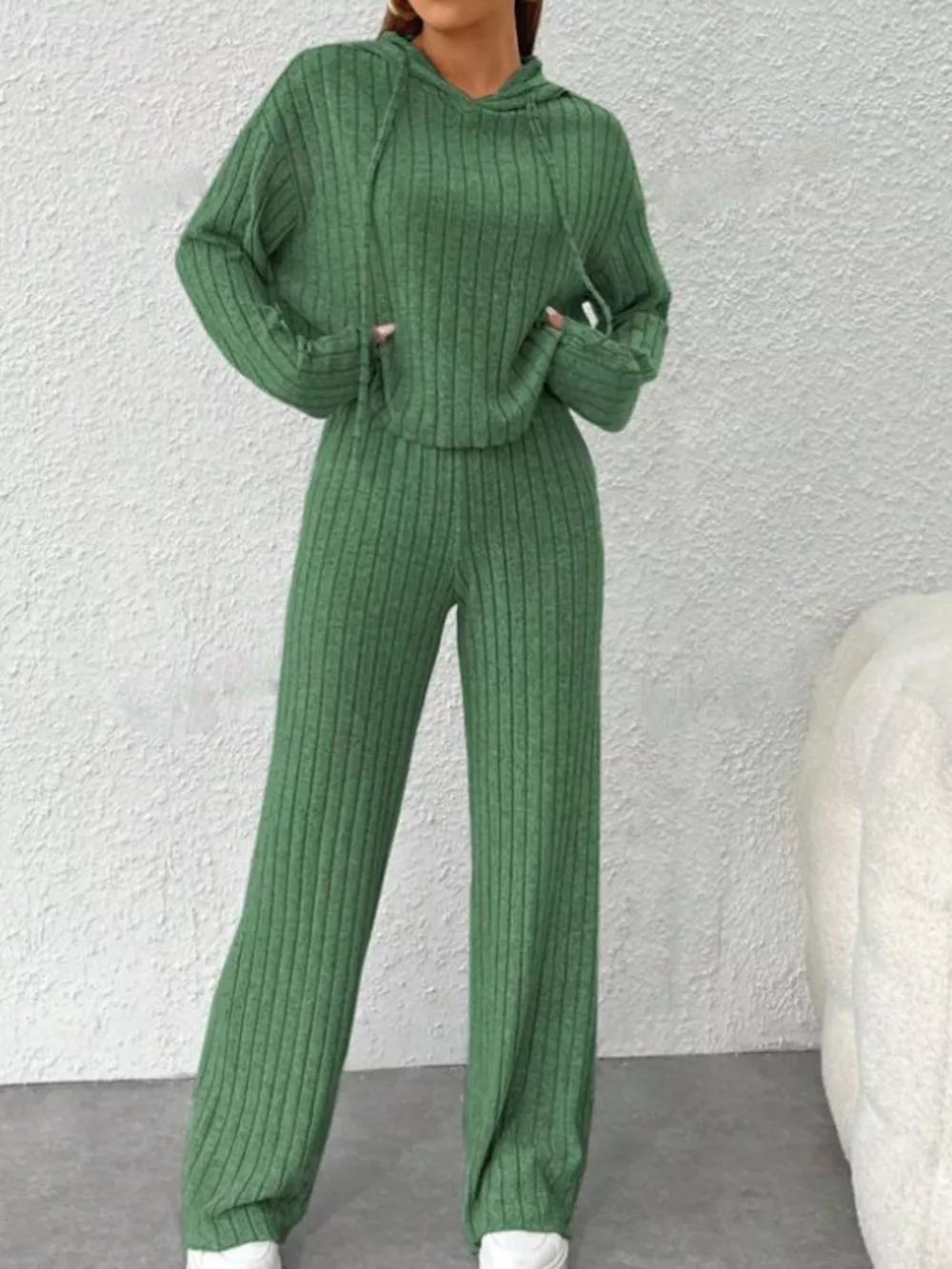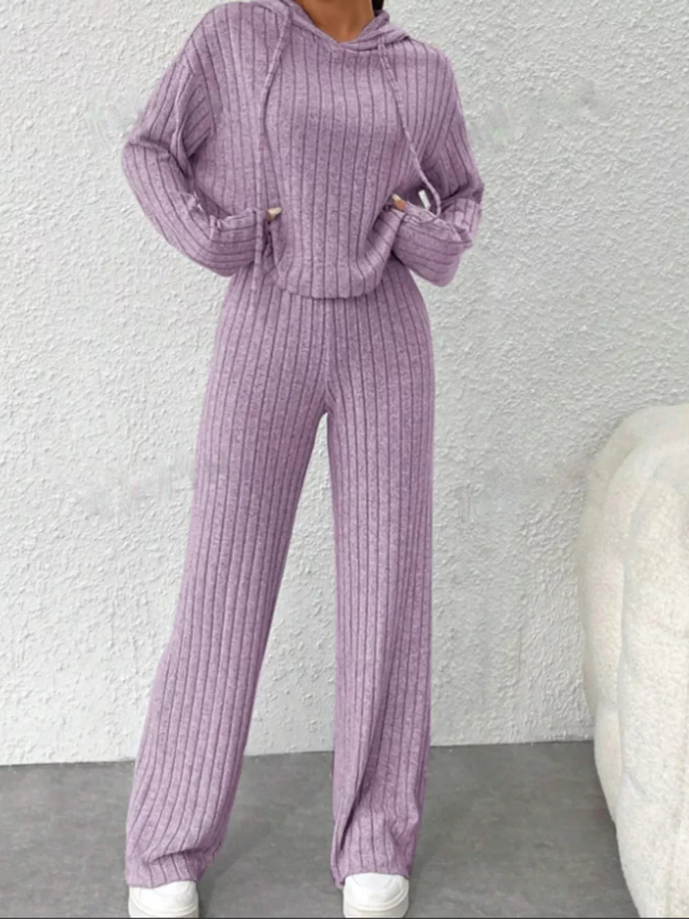 Ribbed Knit Hoodie & Wide Leg Pants Set