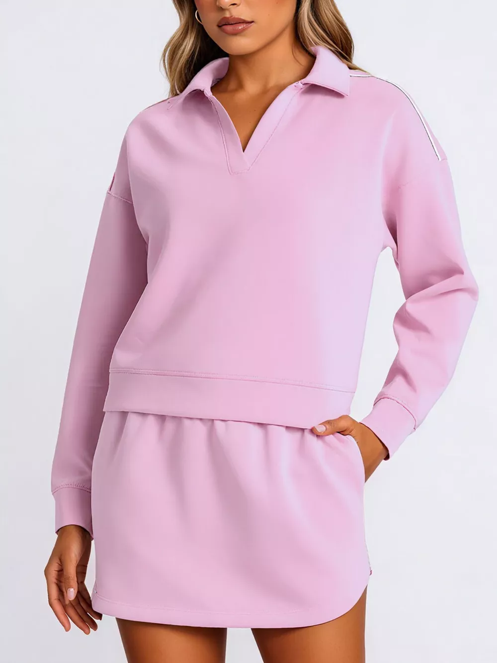 Dropped Shoulder Top and Skirt Set