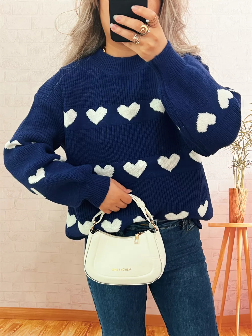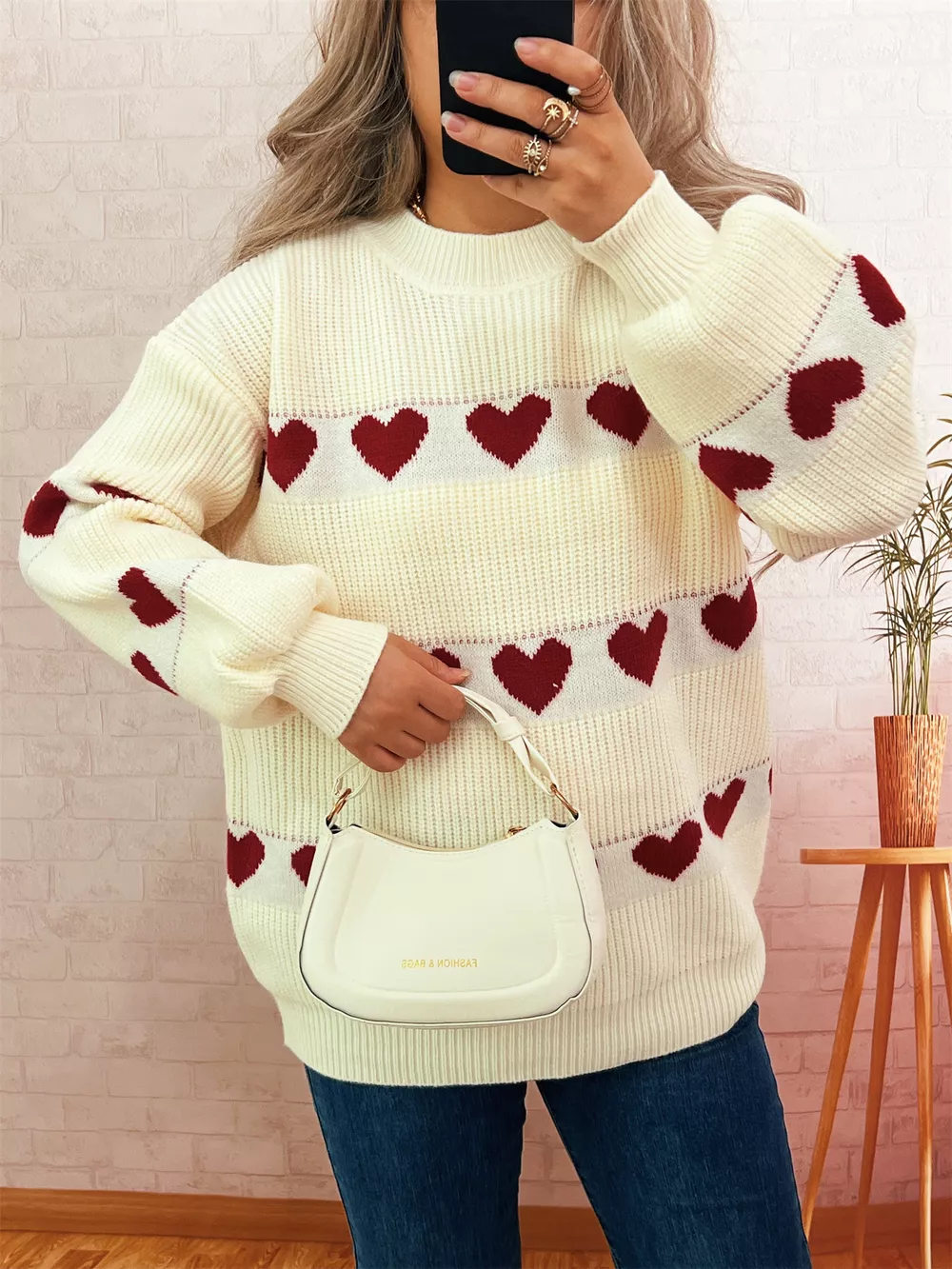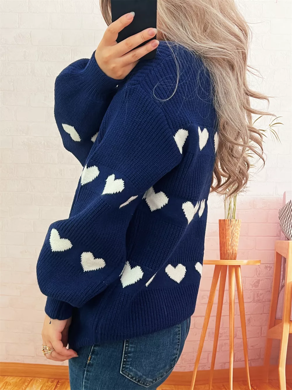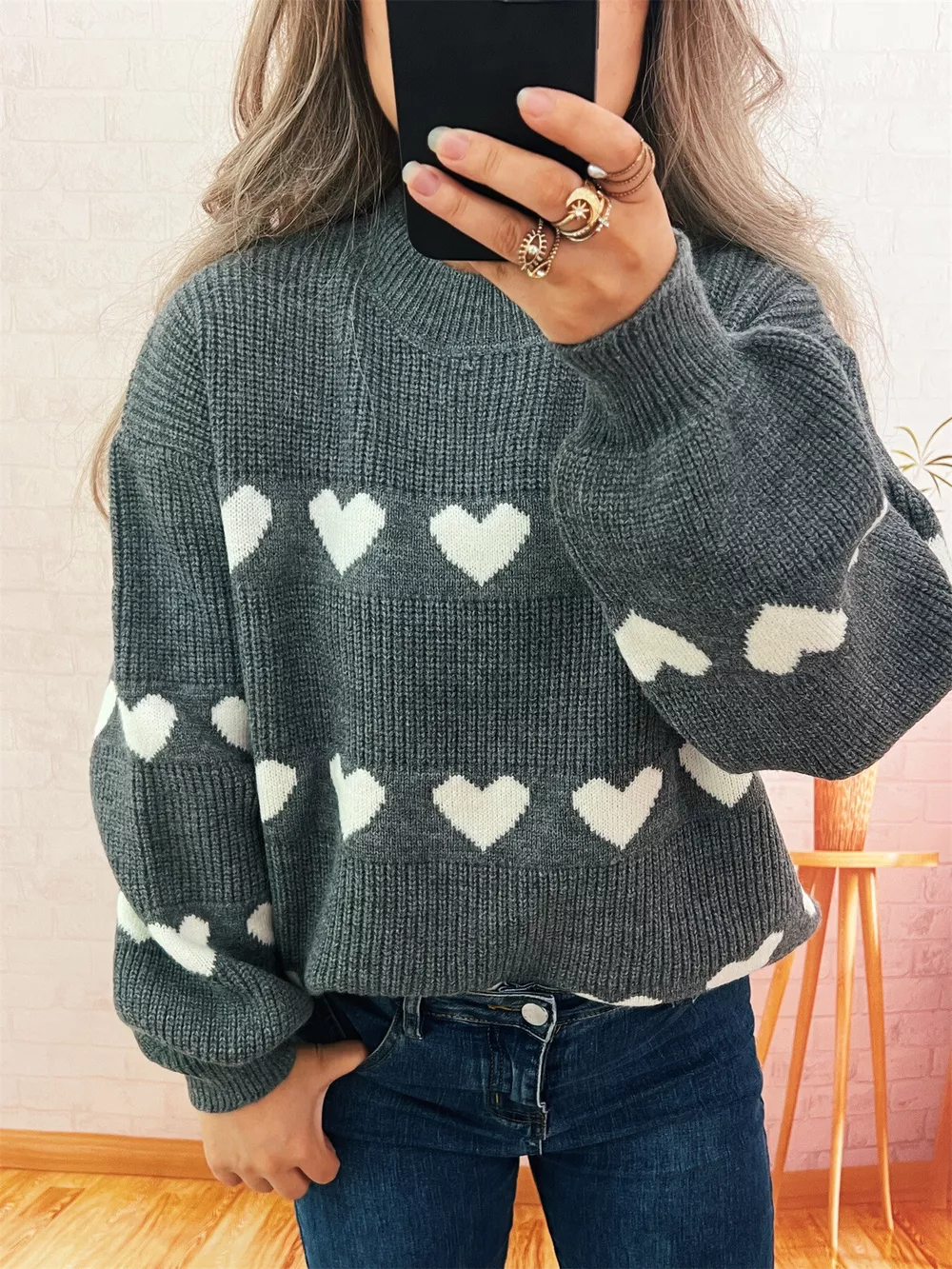Heart Pattern Dropped Shoulder Sweater