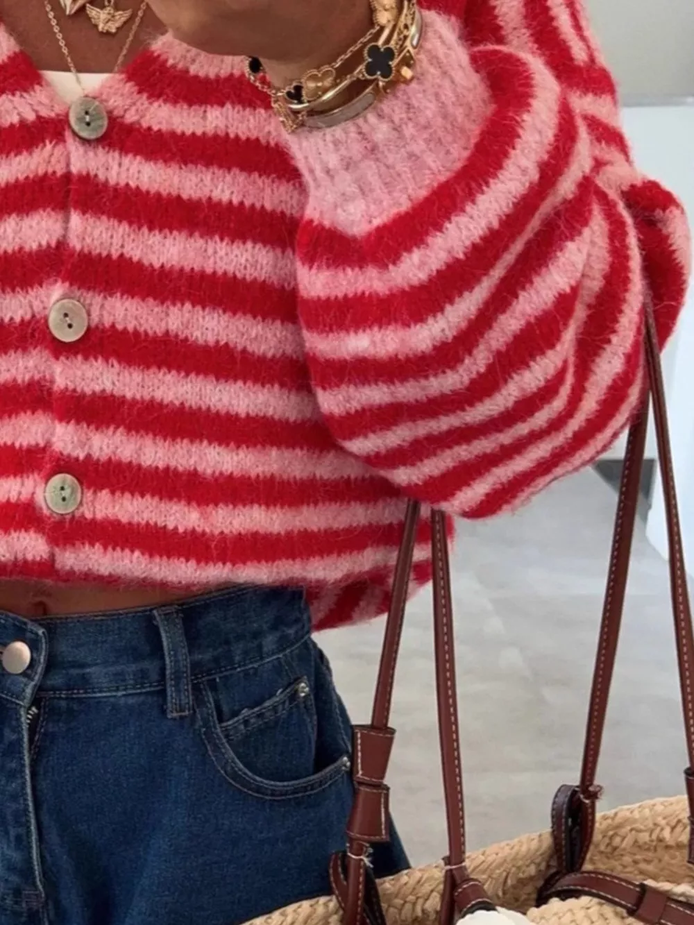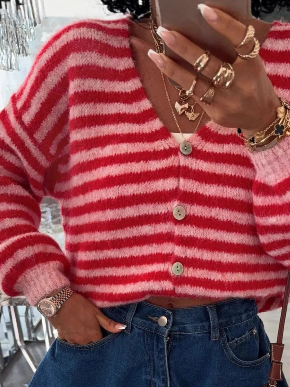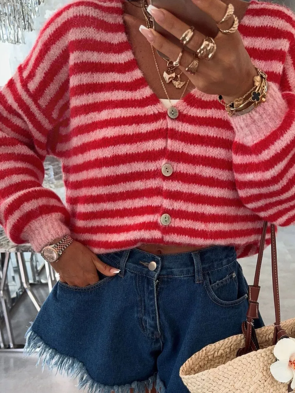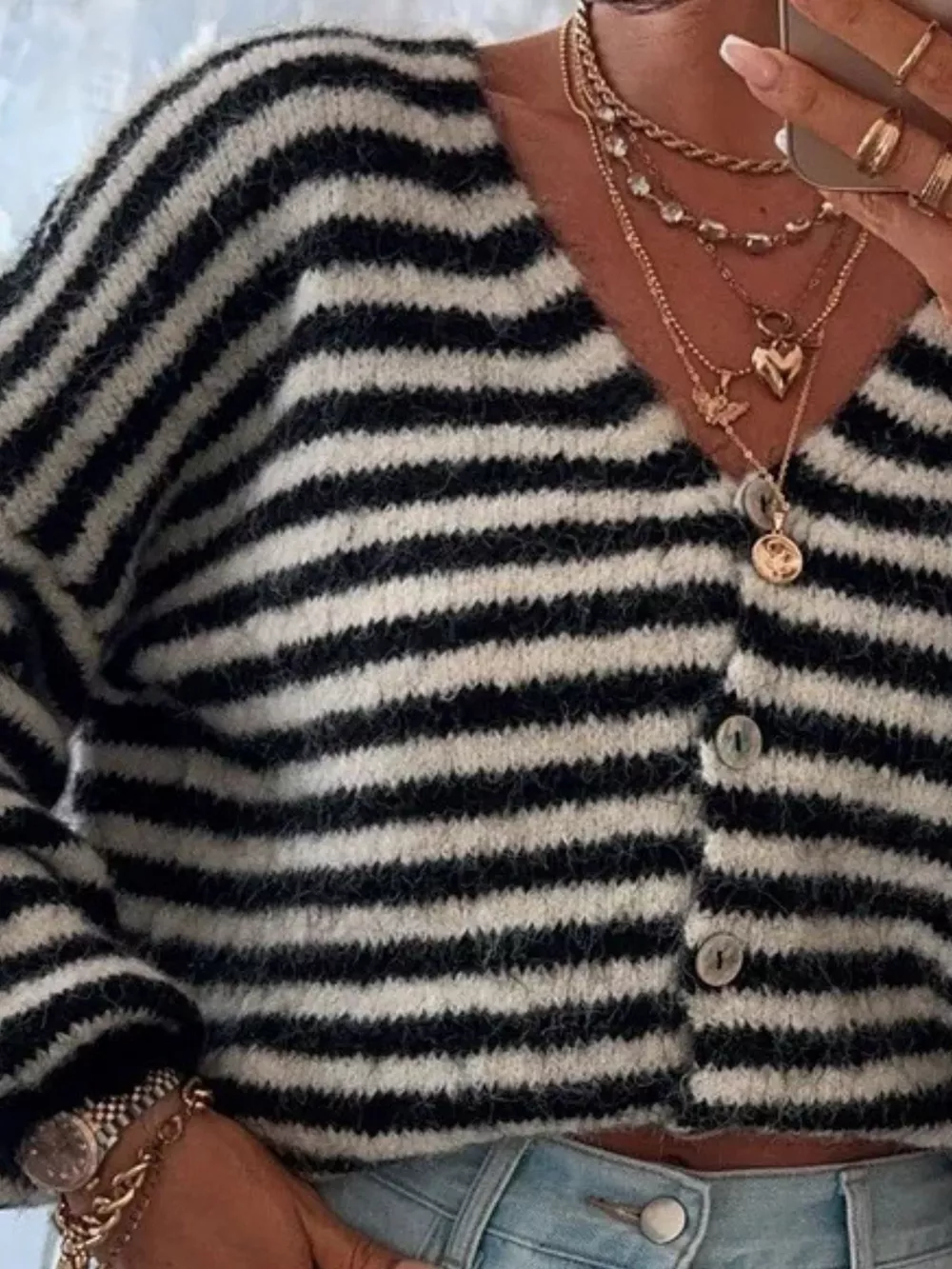 Striped Knit Button-Down Cardigan