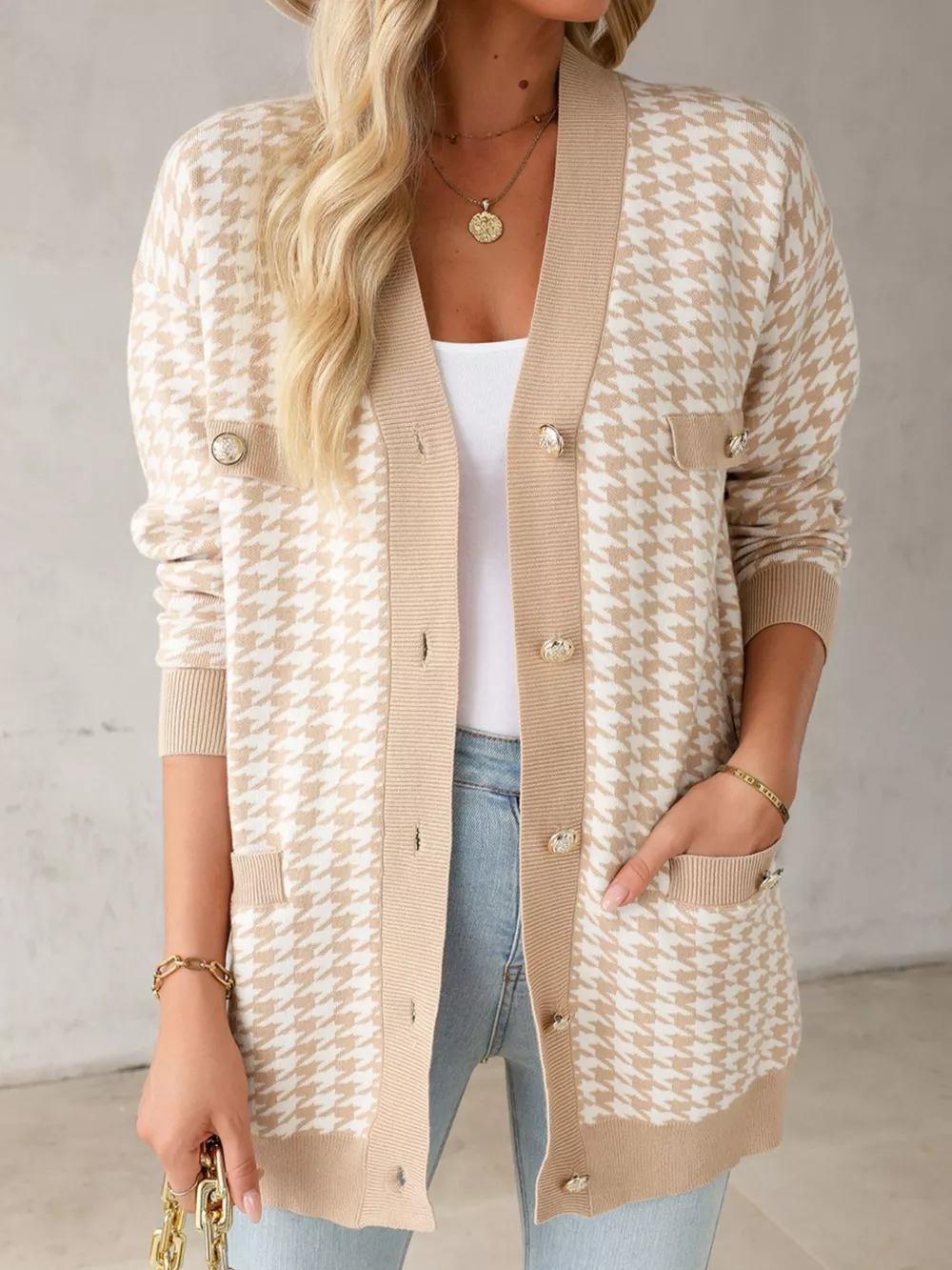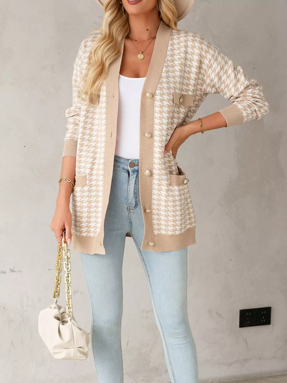 Contrast Edge Metal Button Slim Cardigan with Pockets