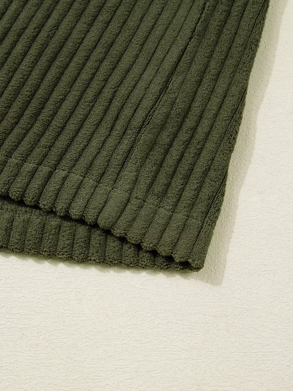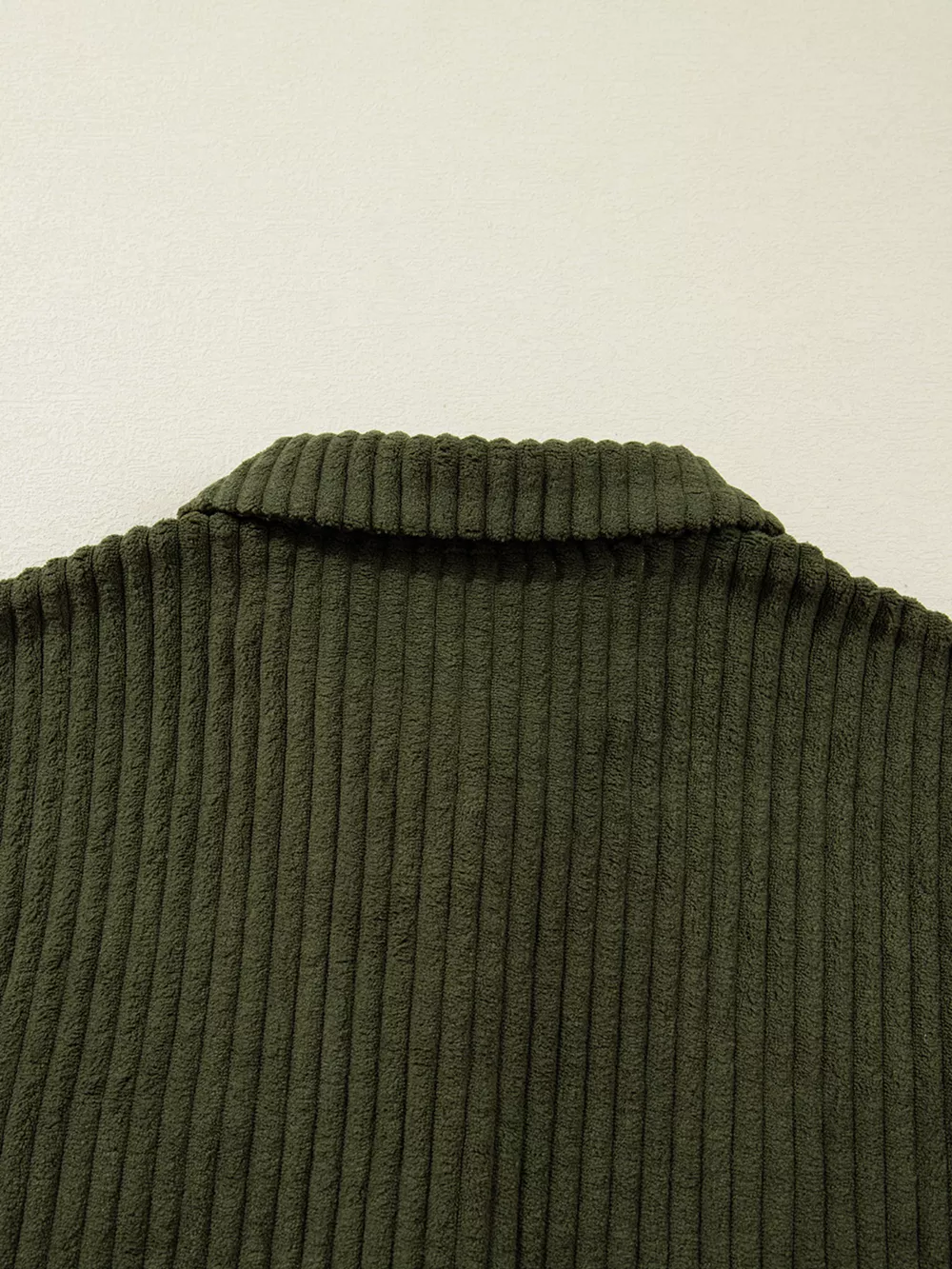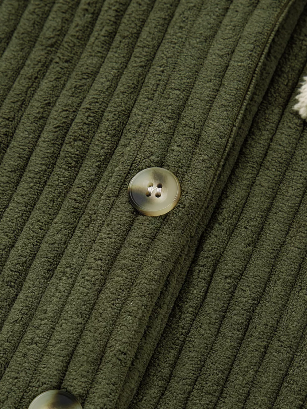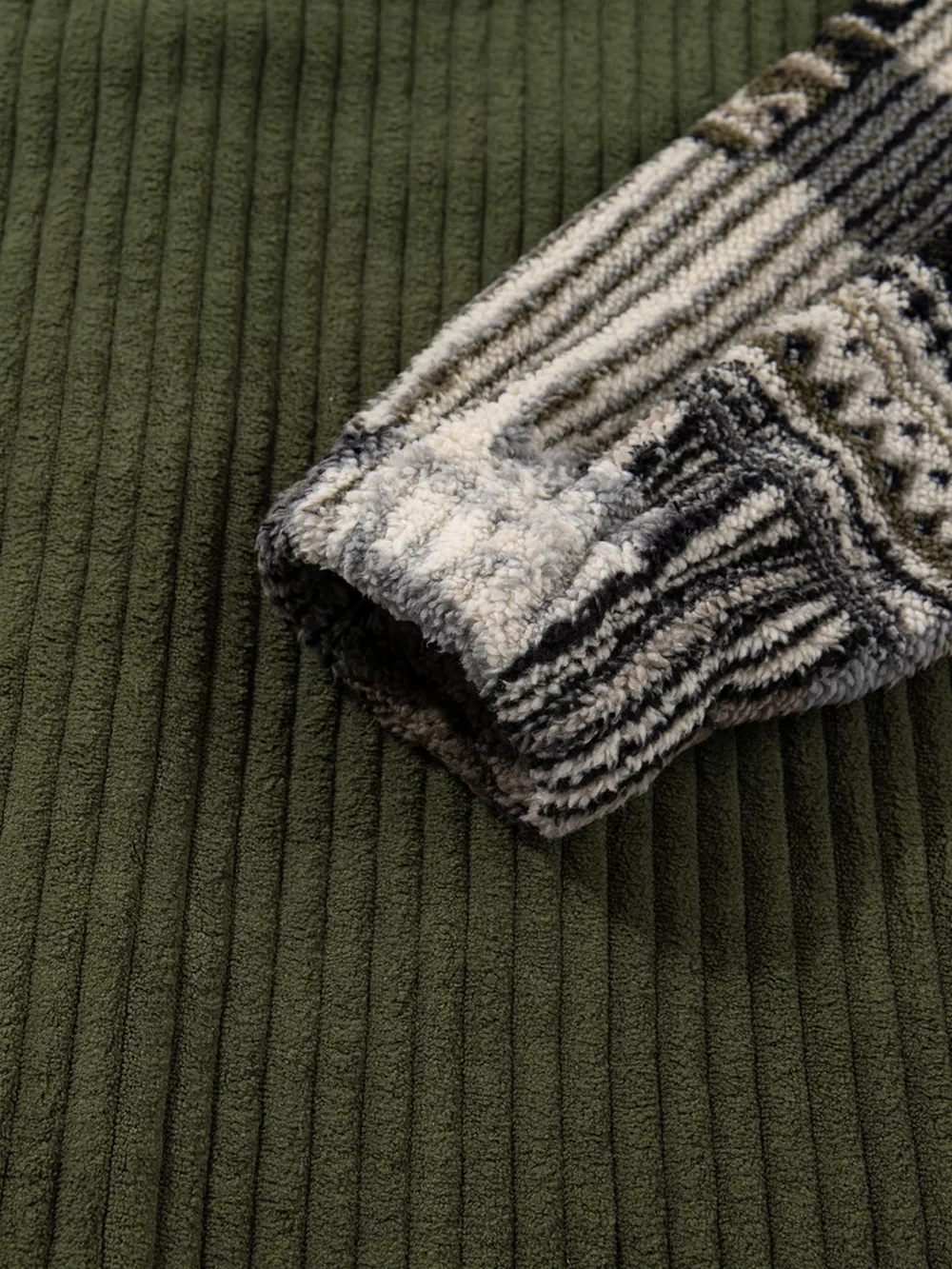 Ribbed Fleece Plaid Print Patchwork Button Up Jacket