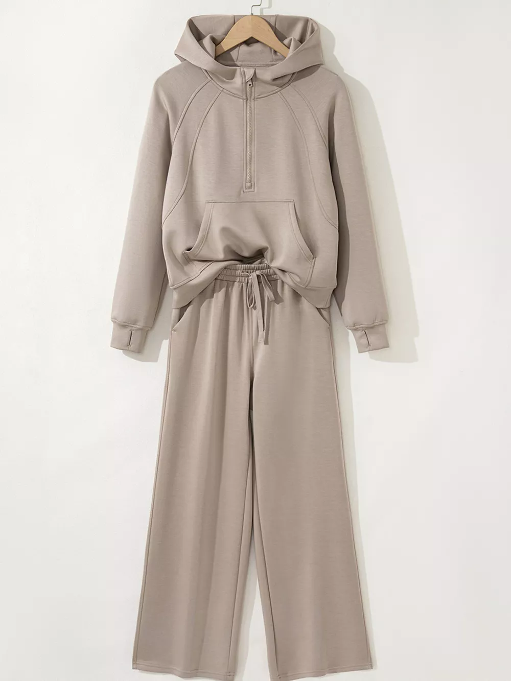 Half Zip Long Sleeve Hoodie and Pants 2pcs Outfit