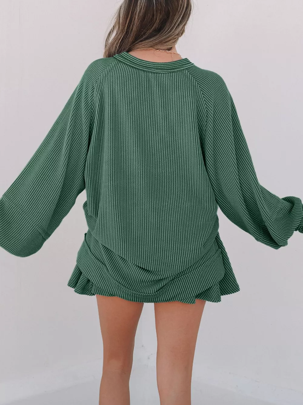 Corded Lantern Sleeve Top and High Waist Mini Skirt Set