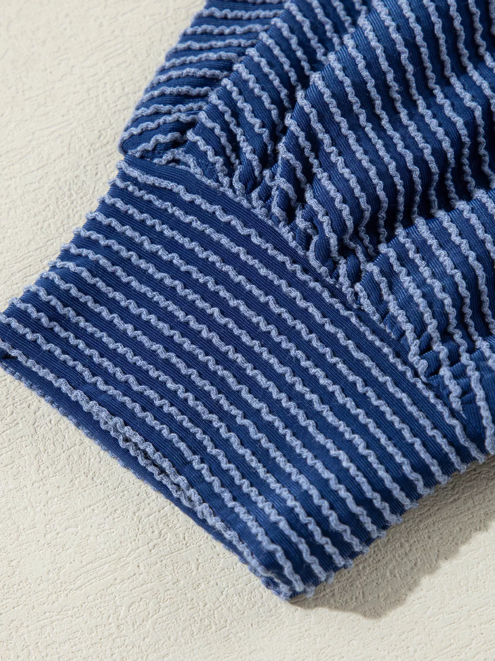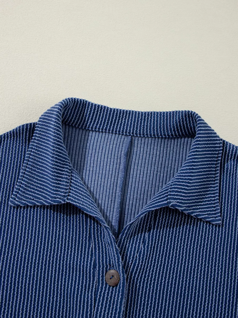 Oversized Twist Ribbed Collared Henley Top with Roll Up Sleeve