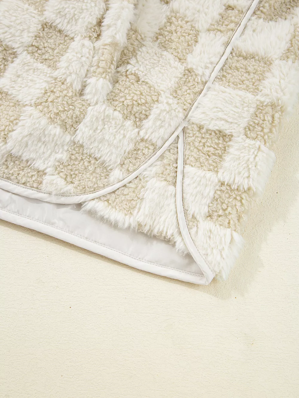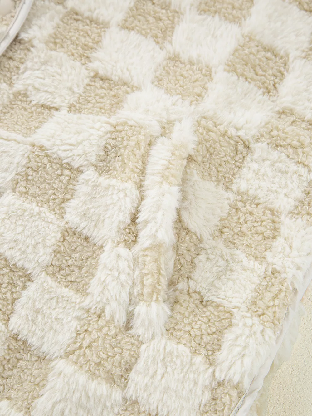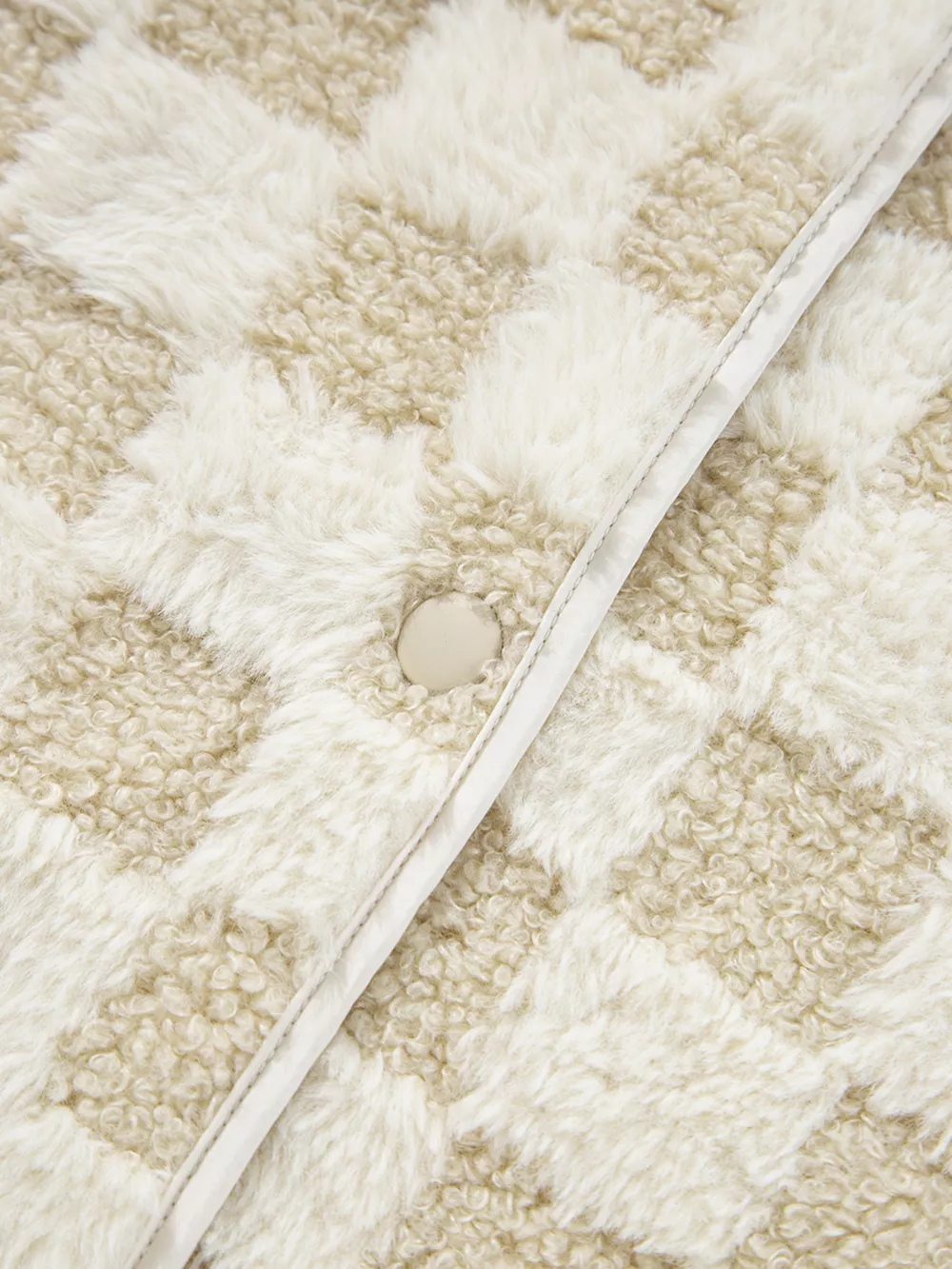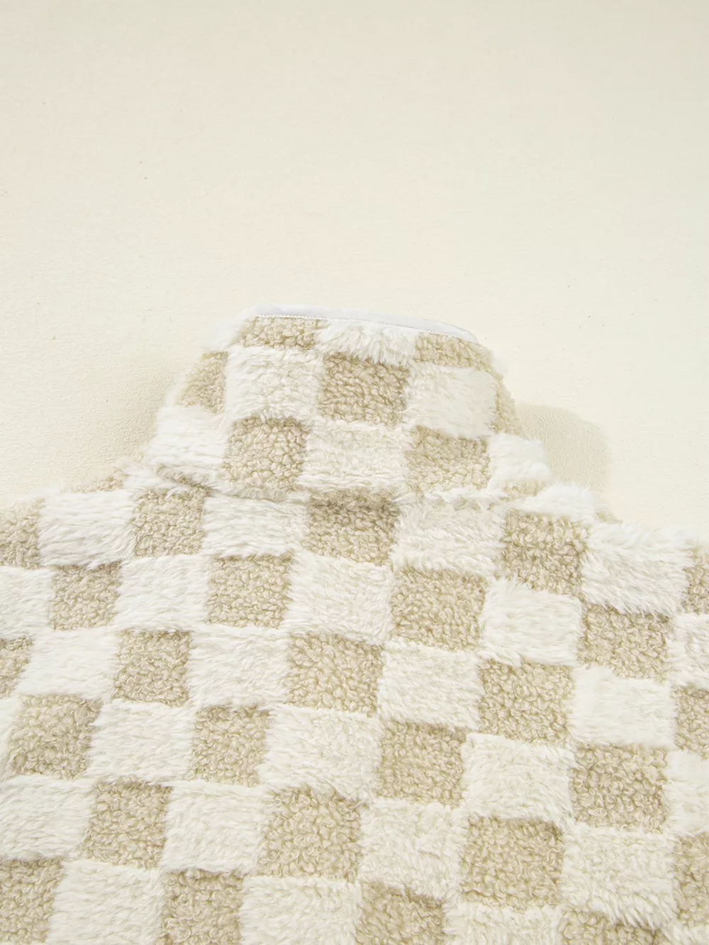 Sherpa Checkerboard Snap Button Vest Coat with Pocket