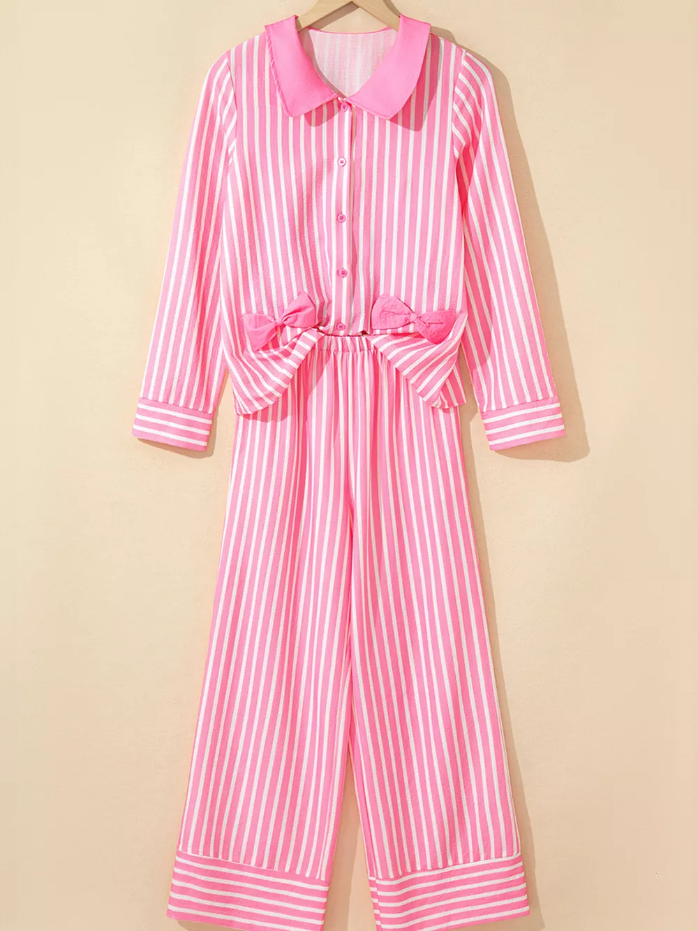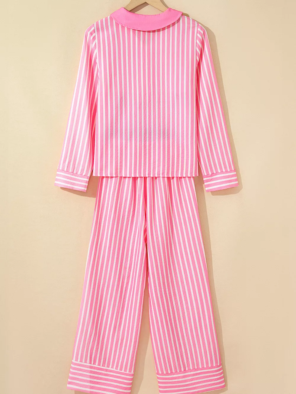 Stripe Buttoned Front Long Sleeve Top and Pants 2 Piece Sleepwear