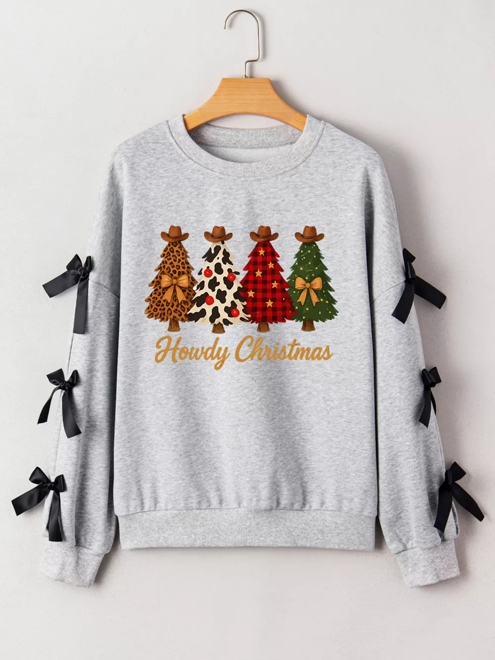 Howdy Christmas 4 Trees Ribbon Bow Decor Sweatshirt