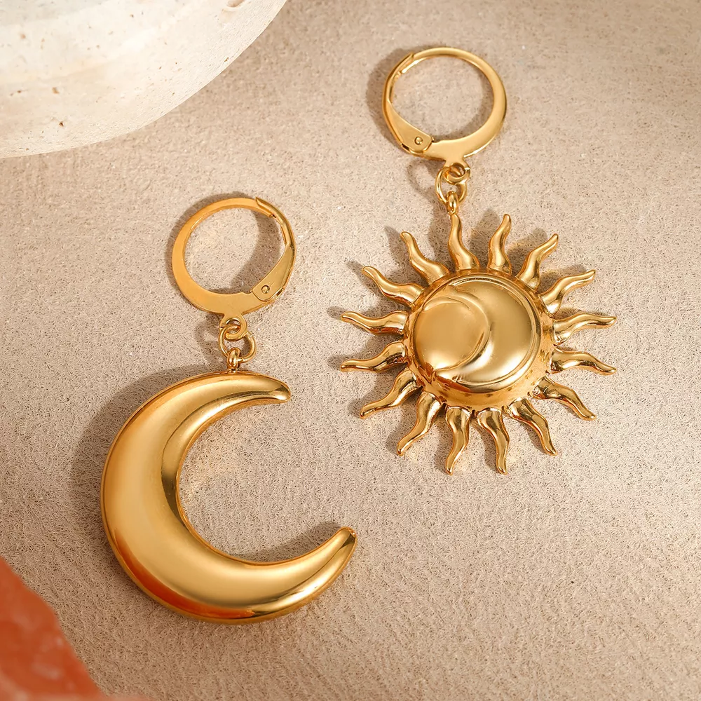 18K Gold-Plated Asymmetrical Sun & Moon Earrings
