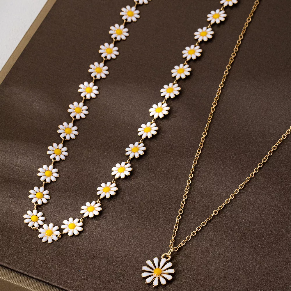 Detailed description of the 2 Piece 18K Gold-Plated Daisy Necklace, highlighting quality, design, and unique features that make it appealing to end consumers.