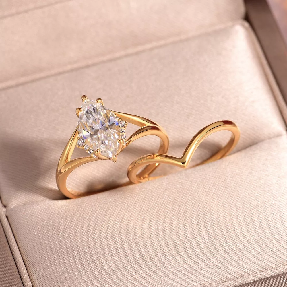 2 Carat Moissanite 925 Sterling Silver 2 Piece Ring