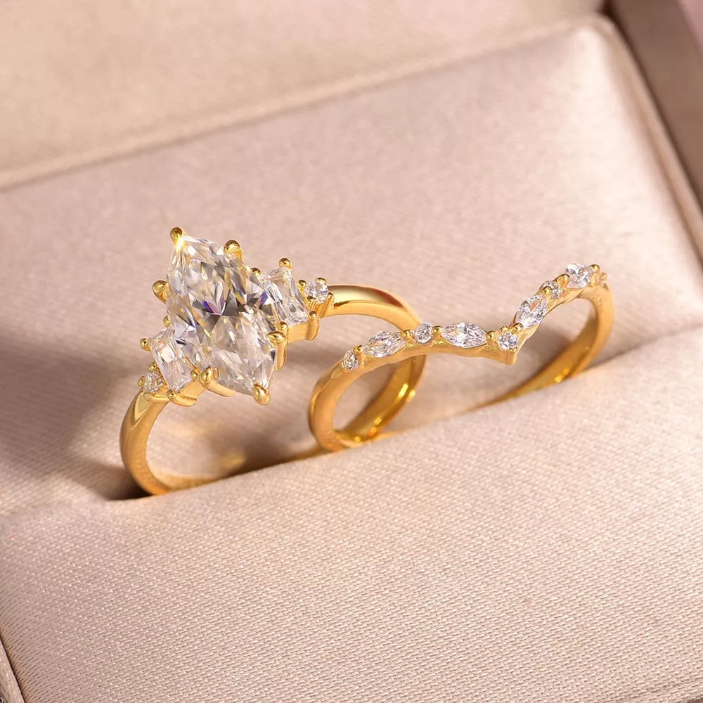 2 Carat Moissanite 925 Sterling Silver 2 Piece Ring
