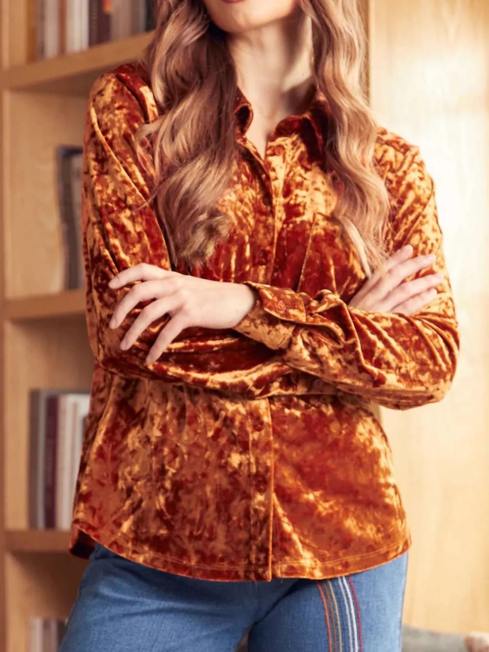 Velvet Button-Down Long Sleeve Shirt
