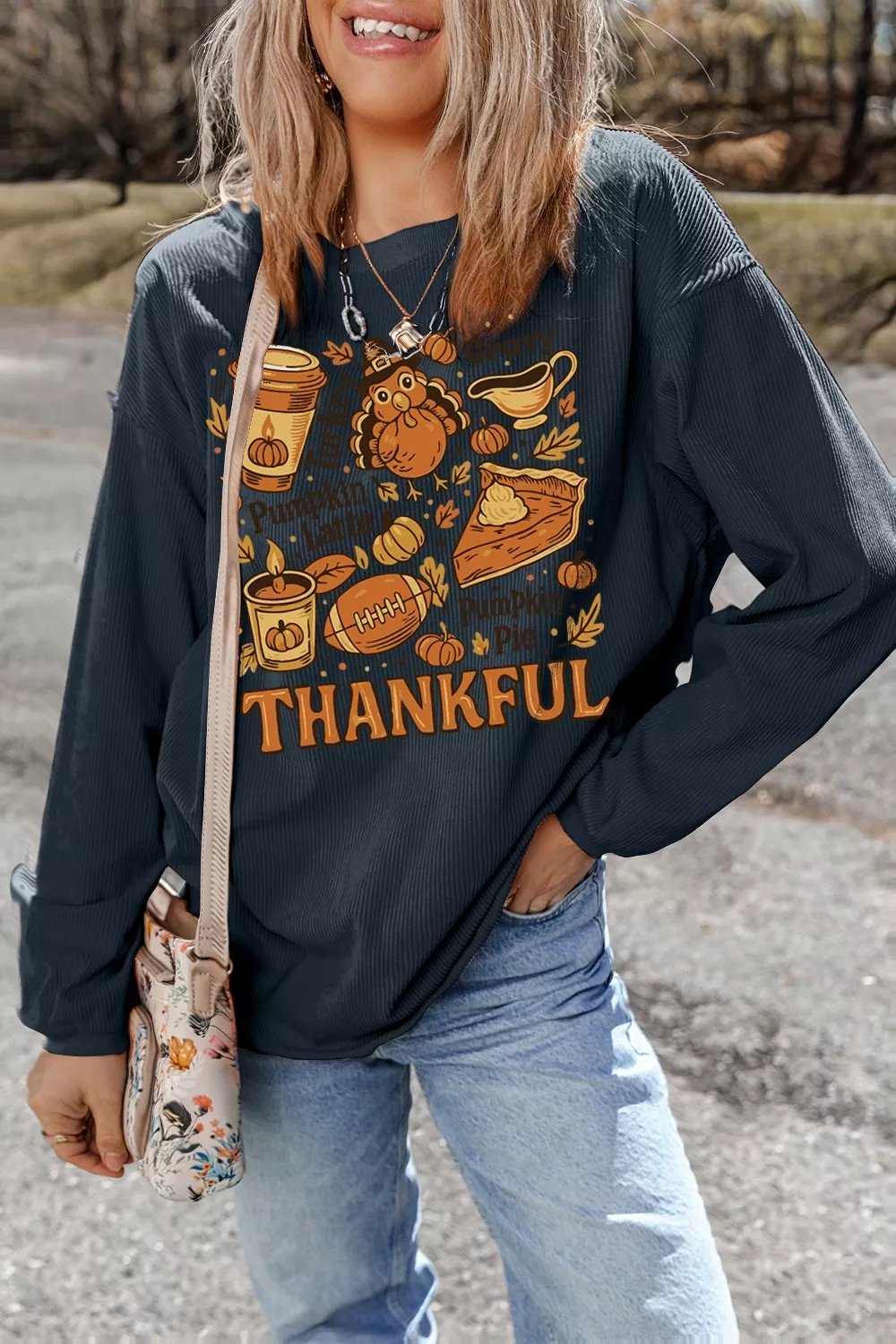 Thankful Thanksgiving Graphic Long Sleeve Sweatshirt