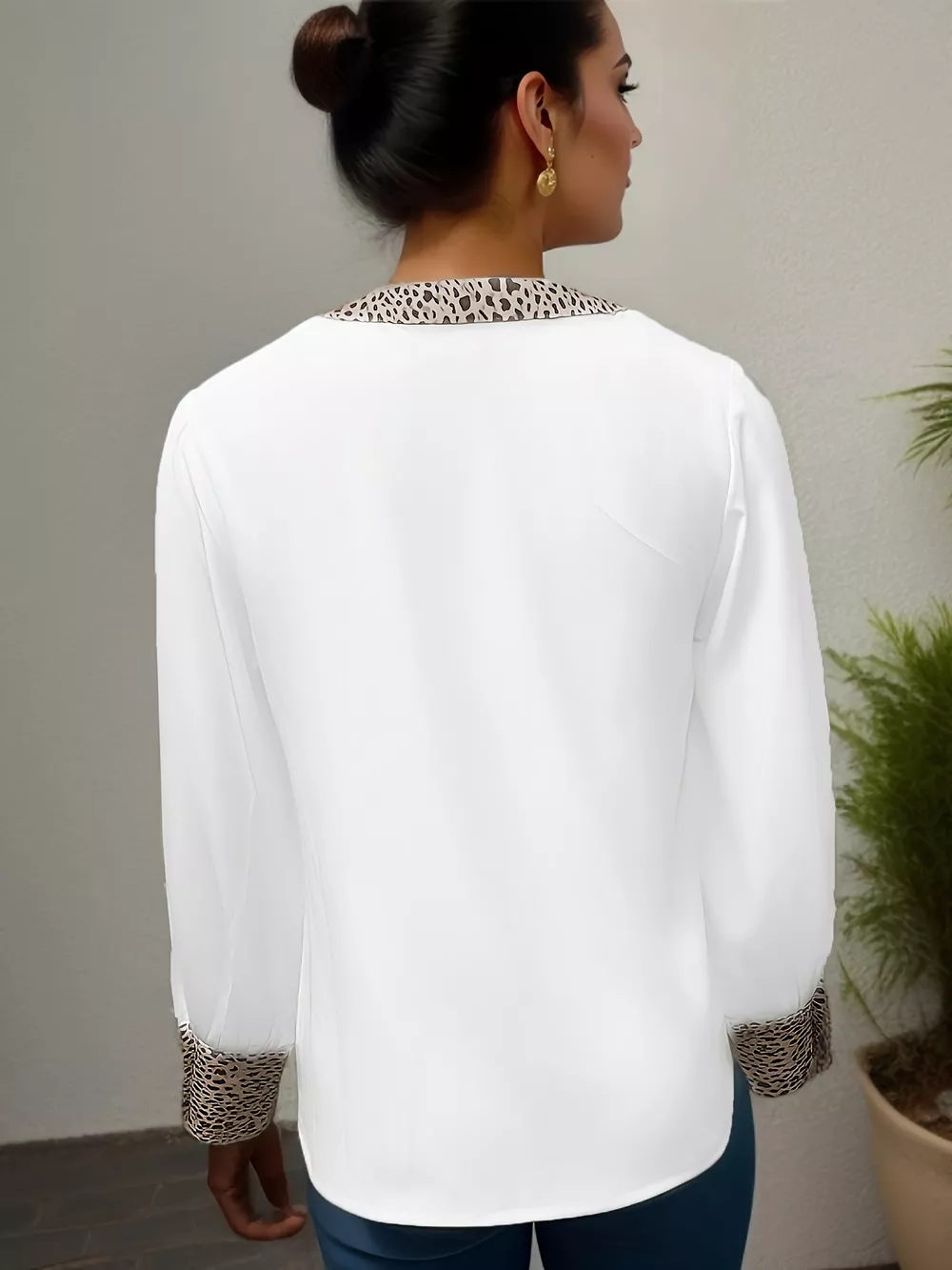 Full Size Leopard Trim Lantern Sleeve Blouse Plus Size