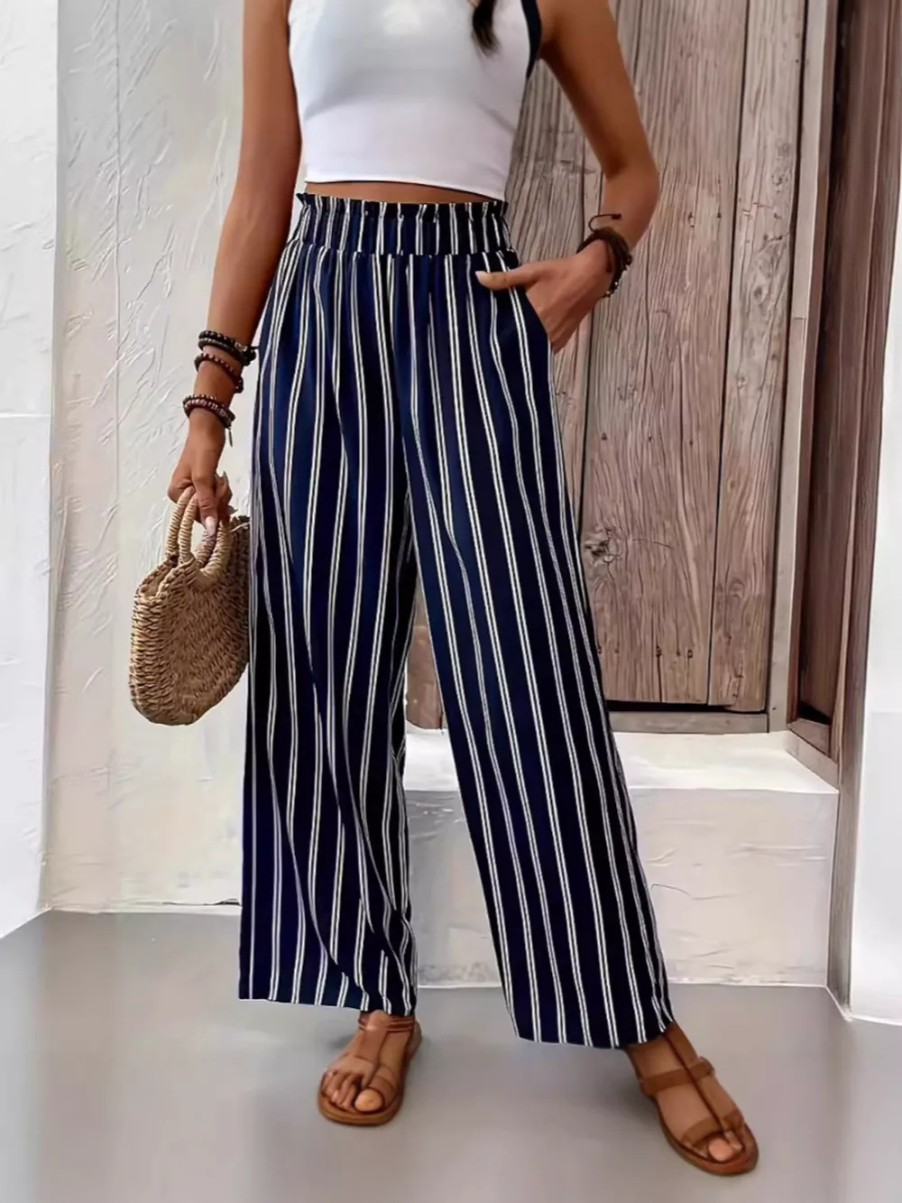 Full Size Striped High Waist Wide Leg Pants Plus Size